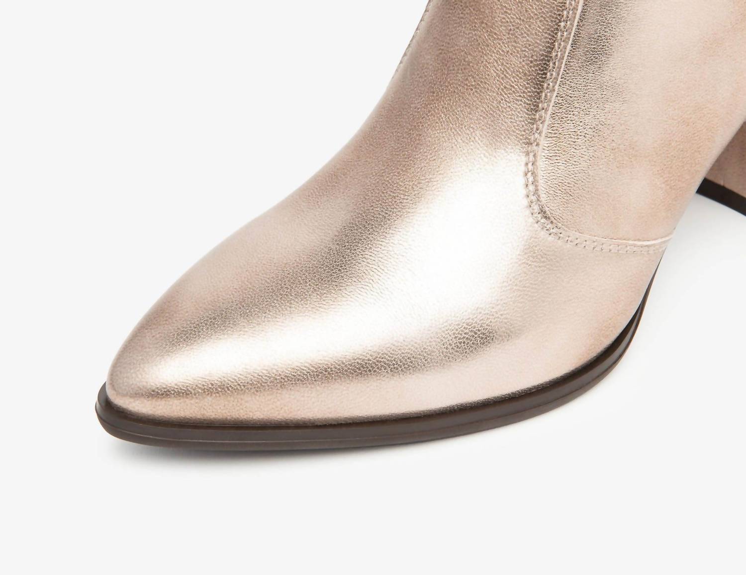 Say hello to the perfect, most versatile boot. The ankle height makes this style easily transition from day to night. Wear them with your favorite skinny jeans and tee for a more laid back look, or pair them with your favorite mini dress and jacket for a night out on the town. Introducing the Women's Metallic Western Ankle Boot by NeroGiardini, an eye-catching choice for your next evening event. Crafted from gleaming metallic leather, these Italian-made boots feature a 3" block heel and a stylish pointed toe. The leather upper and lining promise comfort, while the synthetic sole ensures durability. Designed with a side zip closure for easy wear, they are ideal for minimalist fall fashion, especially on New Year's Eve.