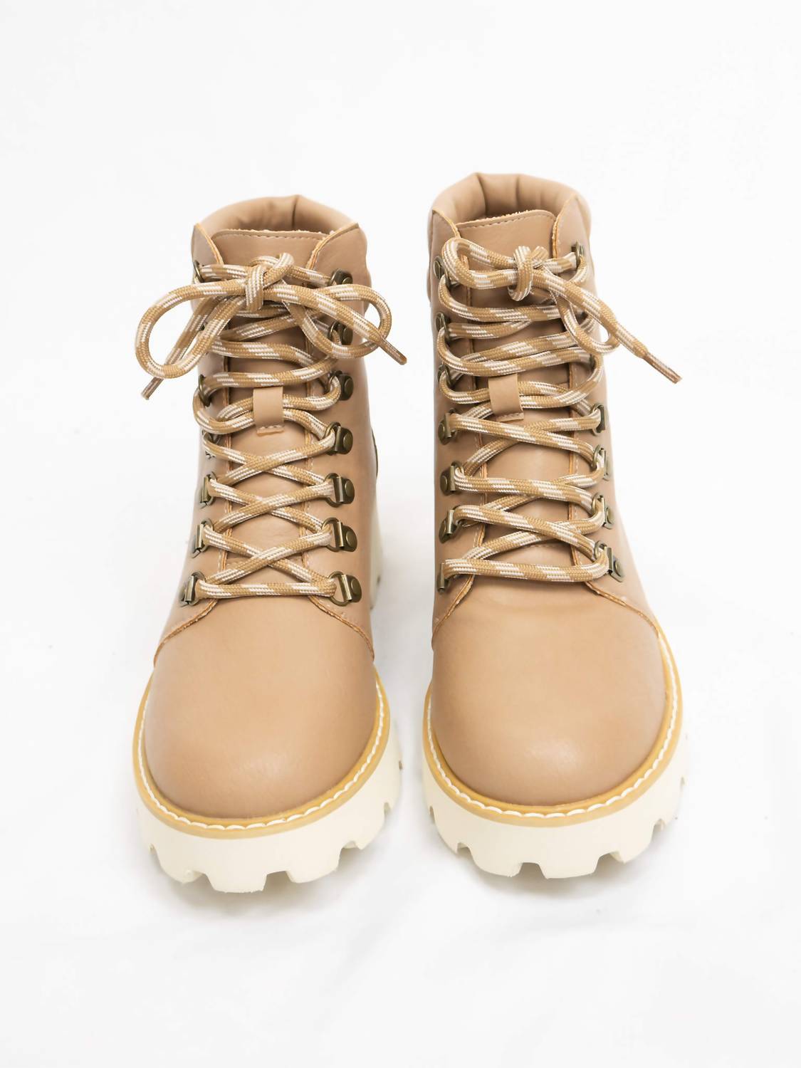 The most effortlessly cool moto boots that are just a comfortable as they are easy on the eyes. Introducing the Women's Kinsley Chunky Combat Boots by Oasis Society, a perfect blend of fashion and practicality in a neutral tan faux leather. These boots feature a chunky sole and a lace-up closure with durable metal eyelets, ensuring a sturdy fit with a round toe design. A padded ankle collar offers extra comfort and support, making them ideal for travel or everyday wear. Pair these versatile boots with denim or a sweater dress for an effortlessly chic look, especially during the fall season.