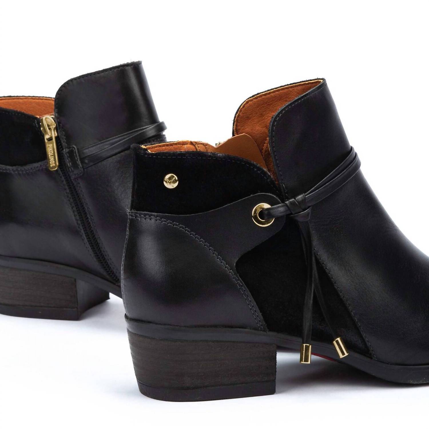Say hello to the perfect, most versatile boot. The ankle height makes this style easily transition from day to night. Wear them with your favorite skinny jeans and tee for a more laid back look, or pair them with your favorite mini dress and jacket for a night out on the town. Introducing the Women’s Daroca Ankle Boots by PIKOLINOS, an elegant choice for any wardrobe in classic black. These ankle boots are crafted with an instep of 100% calfskin leather, an inner lining of 25% calfskin leather and 75% textile, and feature a sole made of 100% synthetic material. Designed for comfort, they have a heel height of 4 cm (1.57") and use a convenient zip closure. Enjoy city strolls with ease thanks to their flexible sole and padded insoles.
