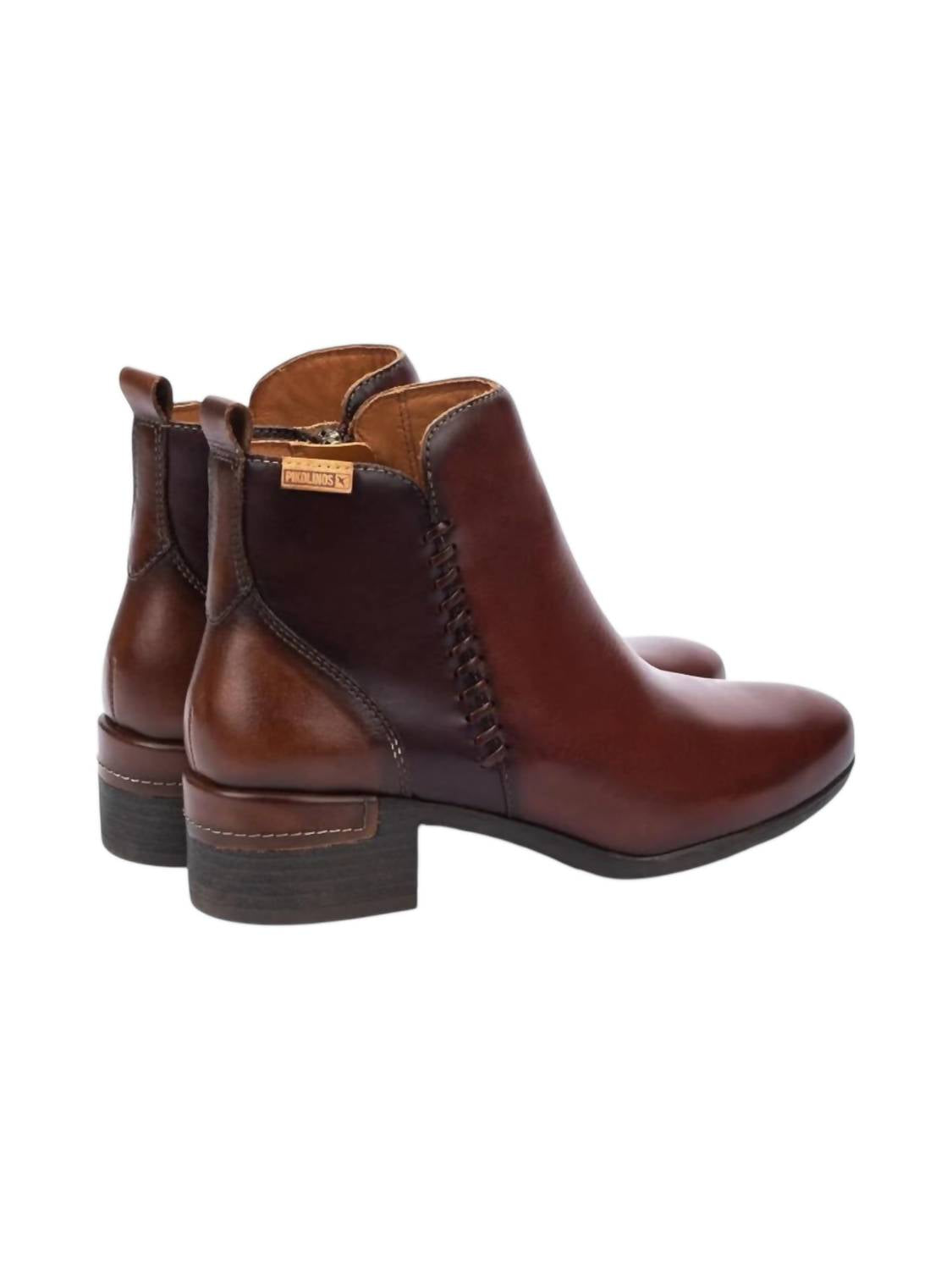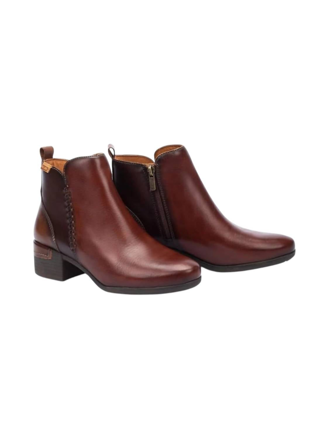 Say hello to the perfect, most versatile boot. The ankle height makes this style easily transition from day to night. Wear them with your favorite skinny jeans and tee for a more laid back look, or pair them with your favorite mini dress and jacket for a night out on the town. Discover the Women's Malaga Leather Bootie by PIKOLINOS, an elegant choice with a 1" block heel for all-day comfort. Crafted from a luxurious leather upper, complemented by textile and leather lining, and a durable synthetic sole, these booties resonate with quality. The side zip closure ensures easy wear, while the cognac color adds a warm, versatile touch to any outfit. Imported for refined taste, these booties promise both style and functionality.