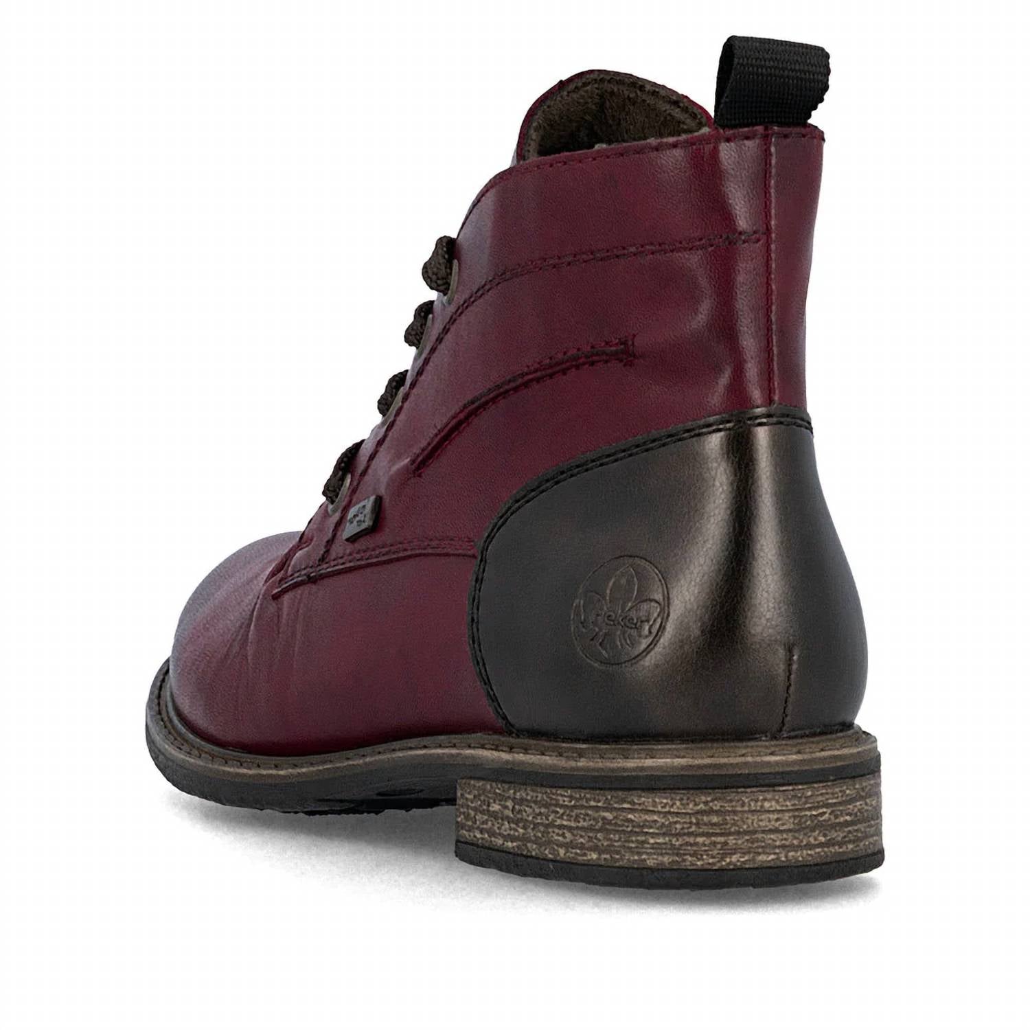 A stylish lace-up boot with a comfortable fit and classic design. Versatile enough to wear with almost every outfit, your closet and feet will be thanking you. Step out in style with the Women's 74804 Lace-up Boots by RIEKER, crafted in rich Vino/Antik leather. These boots combine lace-up appeal with a convenient zipper closure for optimal support. Featuring a low 1.18-inch block heel, these boots ensure comfort with a padded, removable insole and extra width for added space. Designed with a water-repellent RiekerTEX membrane, they are perfect for fall travel, promising warmth and dry feet even on chilly days.