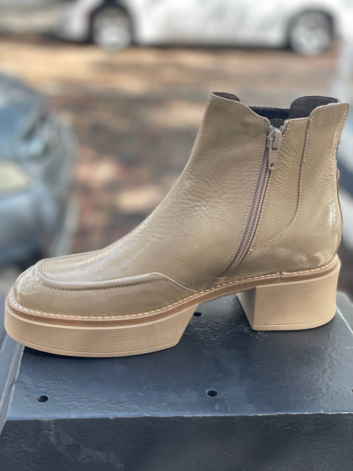 Say hello to the perfect, most versatile boot. The ankle height makes this style easily transition from day to night. Wear them with your favorite skinny jeans and tee for a more laid back look, or pair them with your favorite mini dress and jacket for a night out on the town. Step into the season with the Women's Beryl Platform Booties by Softwaves, an ideal choice for minimalist travel style. Crafted in Sahara patent leather, these booties embody sophistication with a round toe shape perfect for fall and Thanksgiving gatherings. Perfectly embodying the travel trend, these ankle-height beauties are designed for comfort and elegance. Add a touch of class to your ensemble with these platform booties, ensuring every step is taken with stylish confidence.