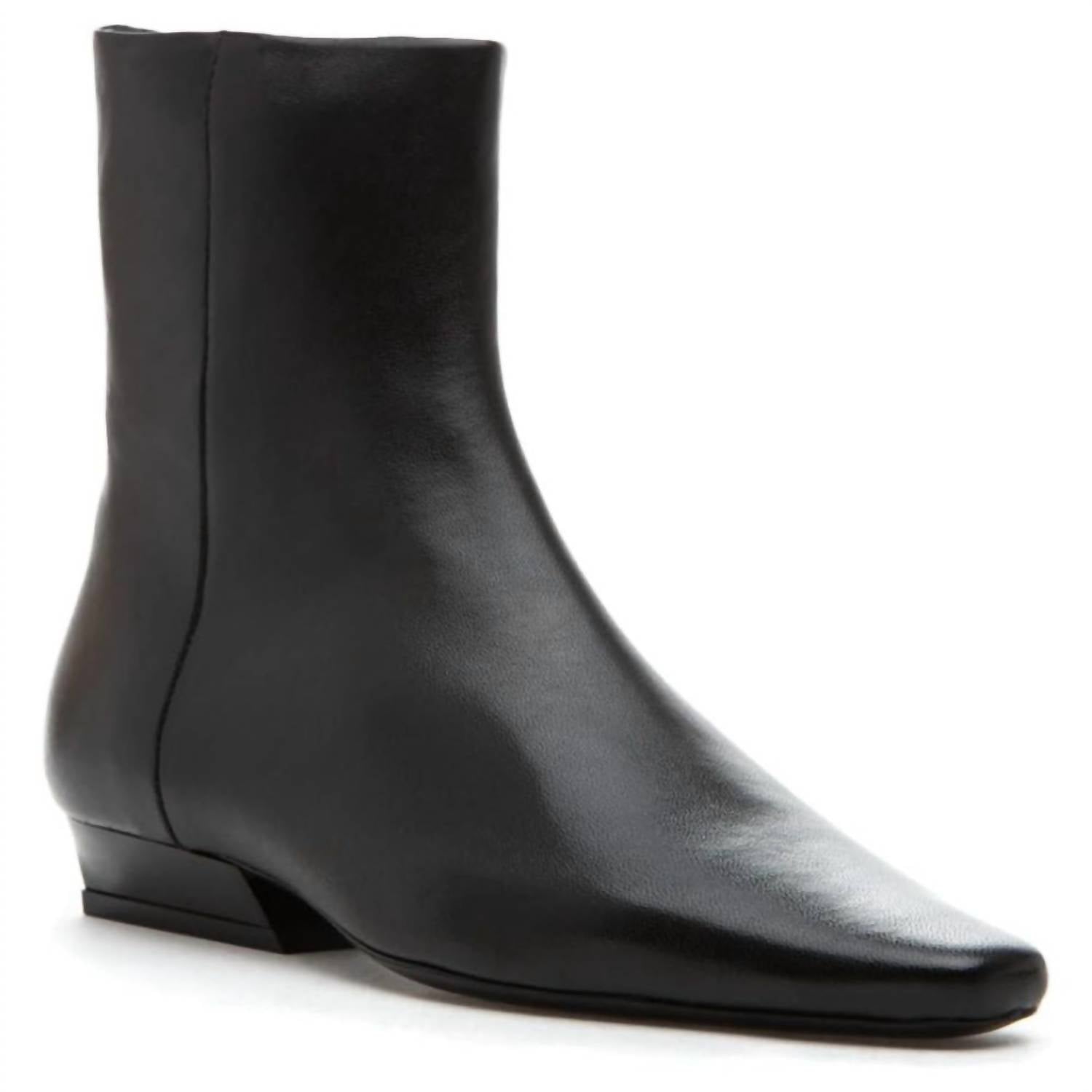 Say hello to the perfect, most versatile boot. The ankle height makes this style easily transition from day to night. Wear them with your favorite skinny jeans and tee for a more laid back look, or pair them with your favorite mini dress and jacket for a night out on the town. Step into sophistication with the Women's Wally Leather Flat Ankle Boot by STAUD, a perfect blend of style and comfort. Crafted from 100% Lamb Leather for the upper and featuring a durable sole made of 85% Cow Leather and 15% Rubber, these boots offer robustness and luxury. The ankle-high design with a 6” shaft circumference and a flat 1" (25mm) block heel ensures a sleek silhouette, enhanced by a pointed rectangular toe box. Perfect for fall engagements, these black boots embody quiet luxury.