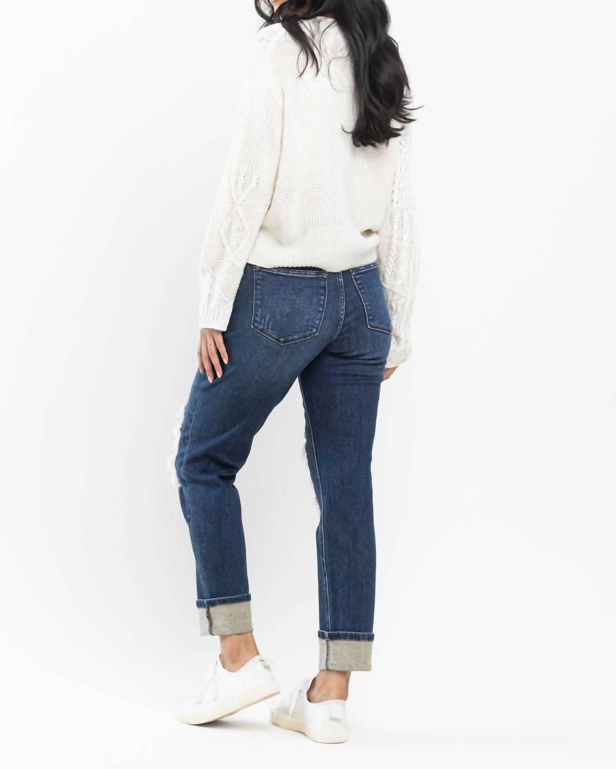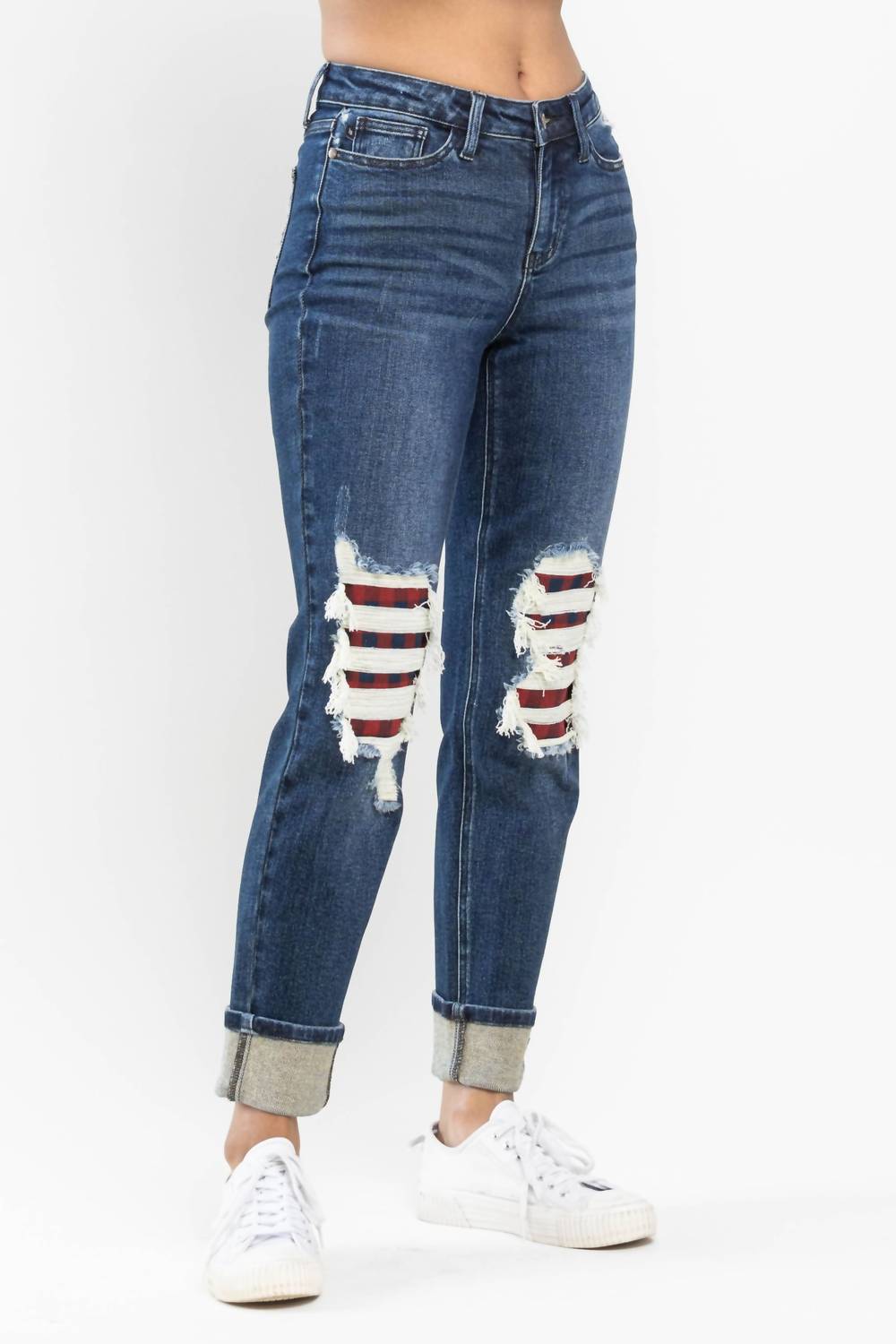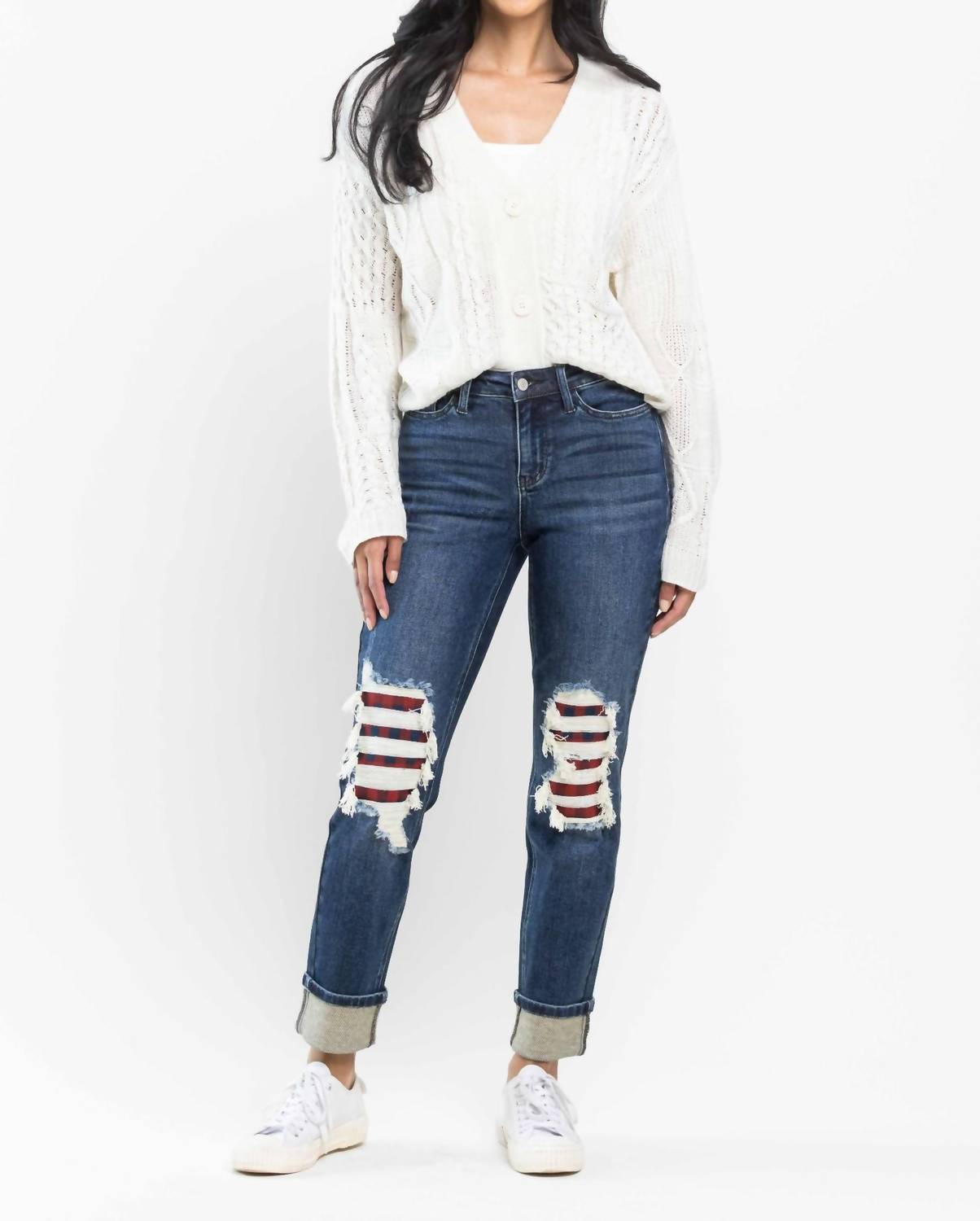 Judy Blue - “charlotte” Midrise Buffalo Plaid Patch Destroyed Boyfriend Jeans