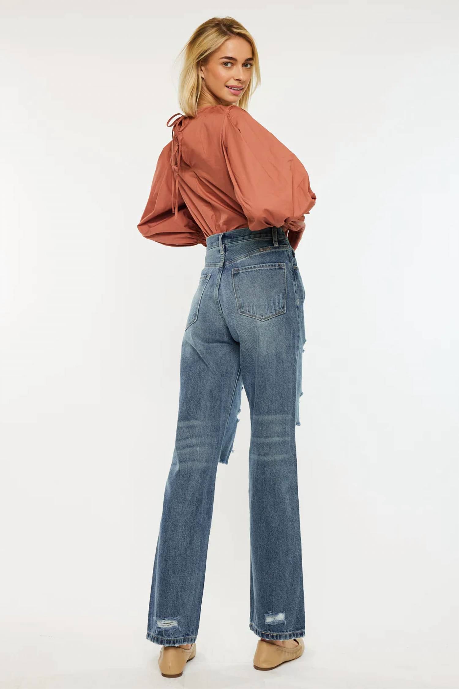 Offering a nostalgic 90s vibe with modern comfort in a wash hue. Sleeve Length: Not applicable. 100% Cotton, providing a rigid denim feel for durability and style. Rise: 12"; Inseam: 32" in size 5/26. Closure: Hidden 5-button for a seamless look. Featuring a high-rise design that flatters by elongating the figure, these jeans are ideal for pairing with cropped tees or bandana tops.