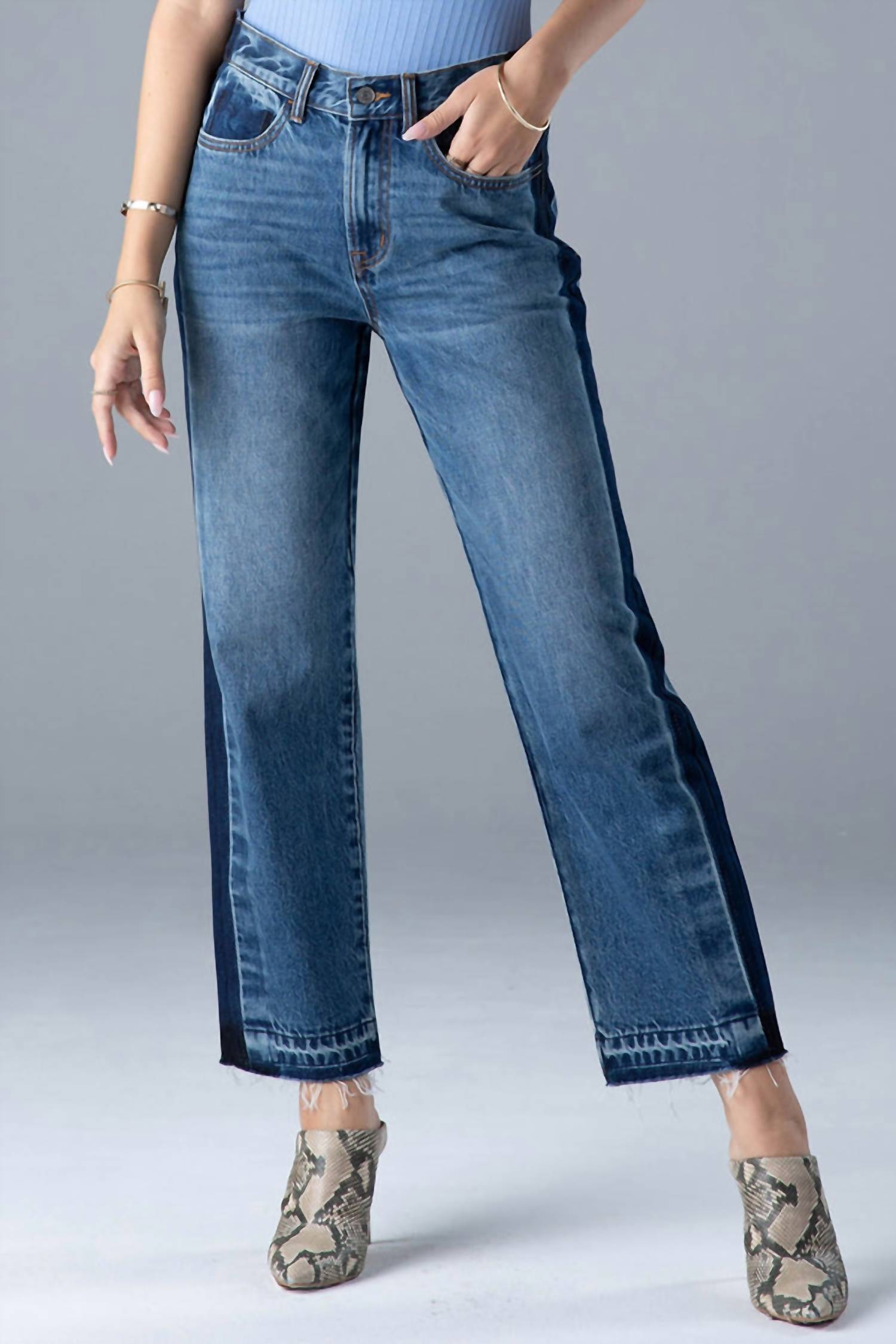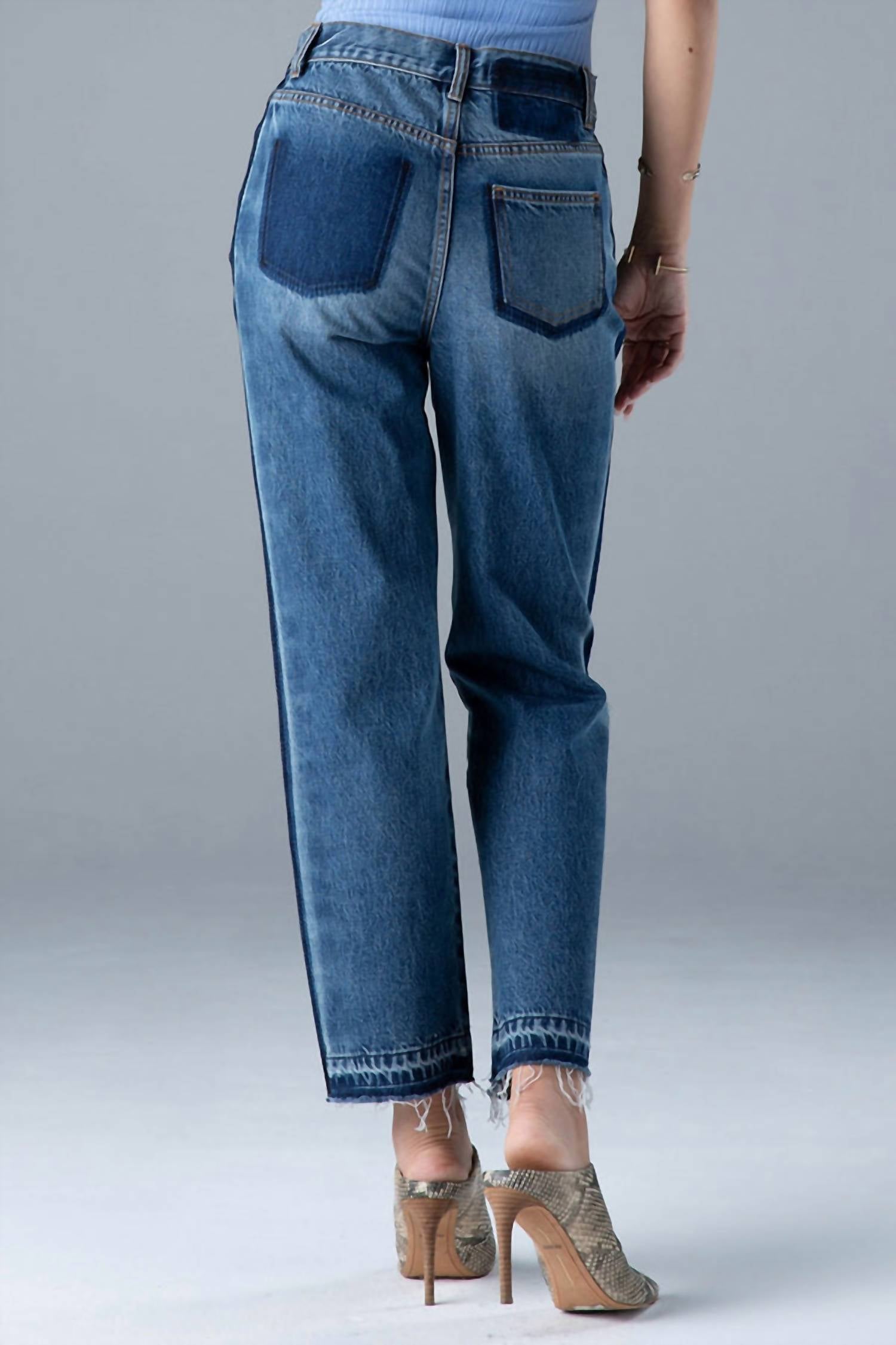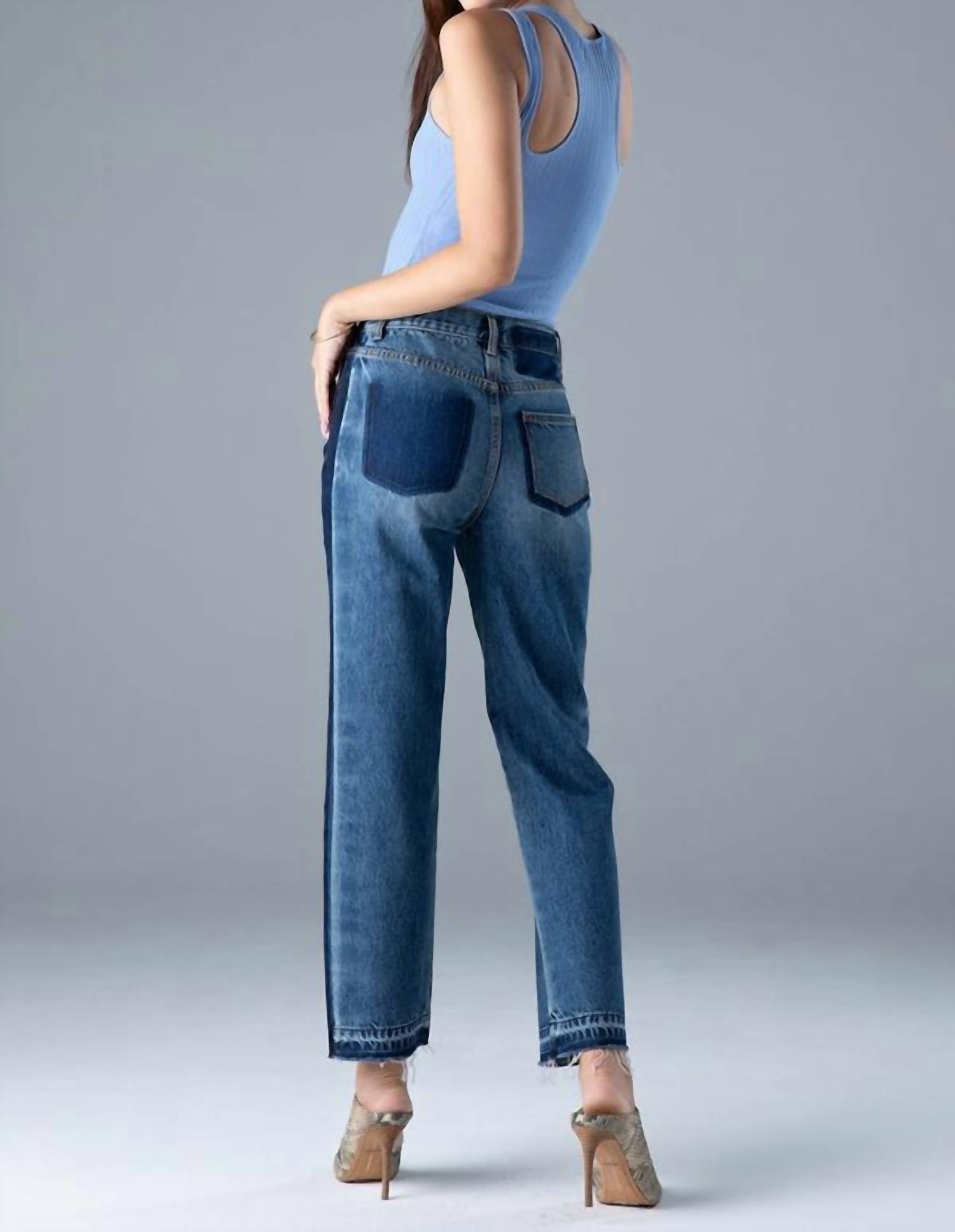 These boyfriend jeans make anything you pair them with look effortlessly cool. Meet the Blake Hi-rise Boyfriend Jean by Ceros, expertly crafted in a Monterey dark wash for a stylish yet relaxed look. Designed with 100% cotton, these jeans feature a high-rise boyfriend silhouette and a chic color-blocked panel on the outseam, complemented by a faux back pocket detail. With a front rise of 10.5 inches, inseam of 28.5 inches, and a leg opening of 15.5 inches, their straight-leg design offers comfort and versatility. Button closure. Wash inside out with like colors in cold water.