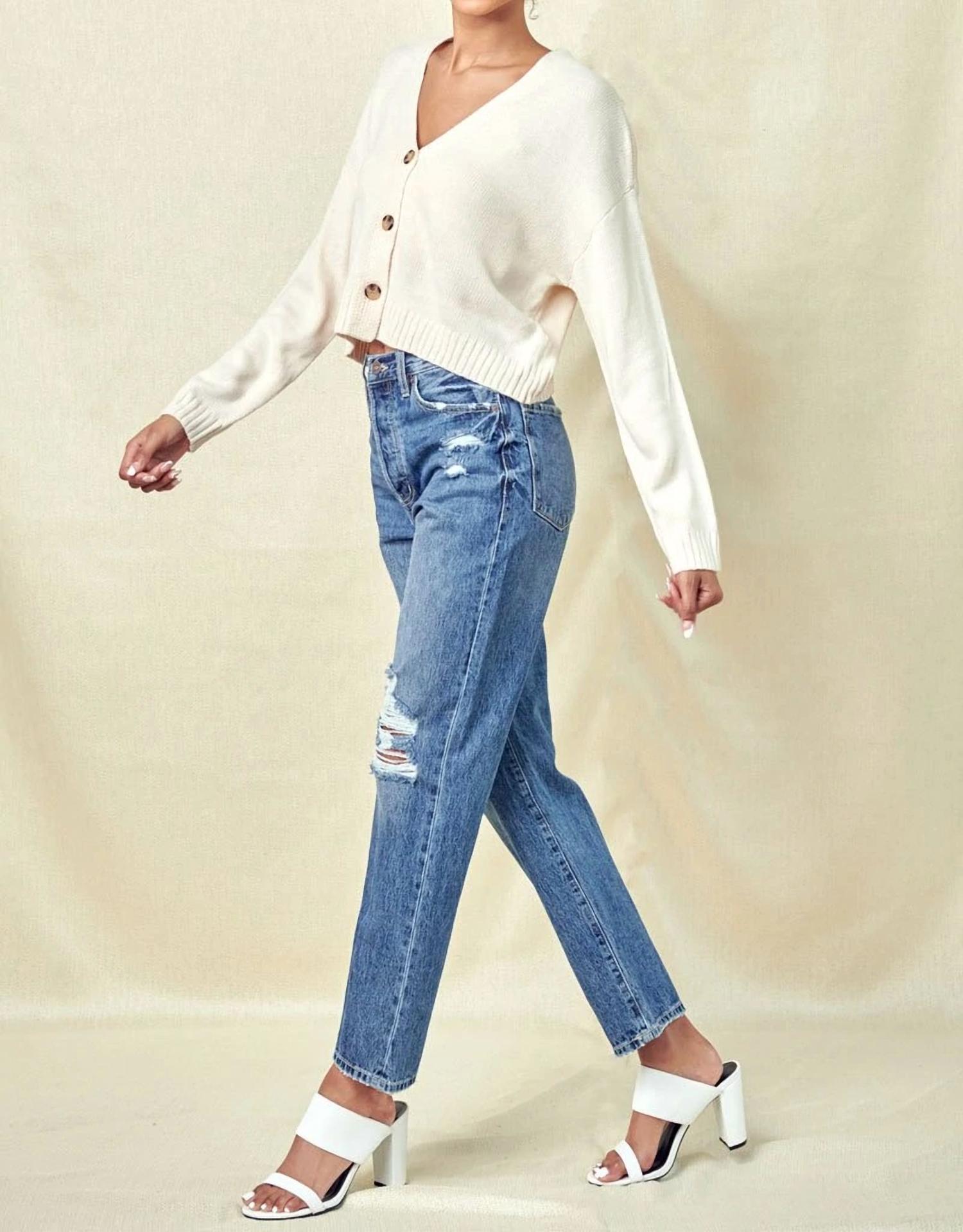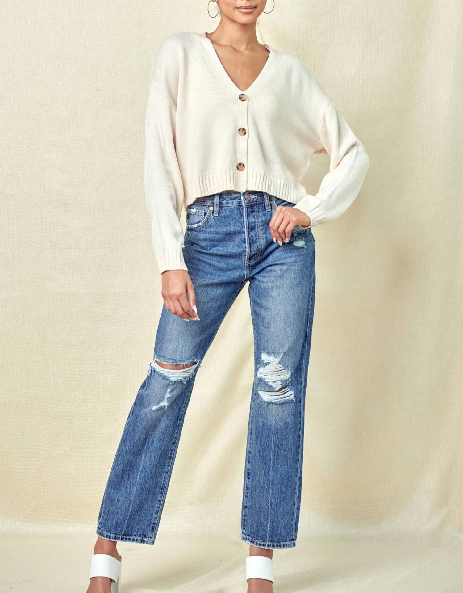 a laid-back feel while still surprisingly form-flattering. Experience the relaxed style of the Hilana Ultra High Rise 90's Boyfriend Jeans by KanCan, perfect for any streetwear-inspired summer engagement. Featuring a 12" rise and a 28" inseam in size 5/26, these jeans offer a flattering fit with a straight leg style. Constructed from 100% cotton, they come in a solid medium wash, complete with practical pockets and a secure button closure. Embrace the high rise comfort of these boyfriend/girlfriend fit jeans in any casual setting.