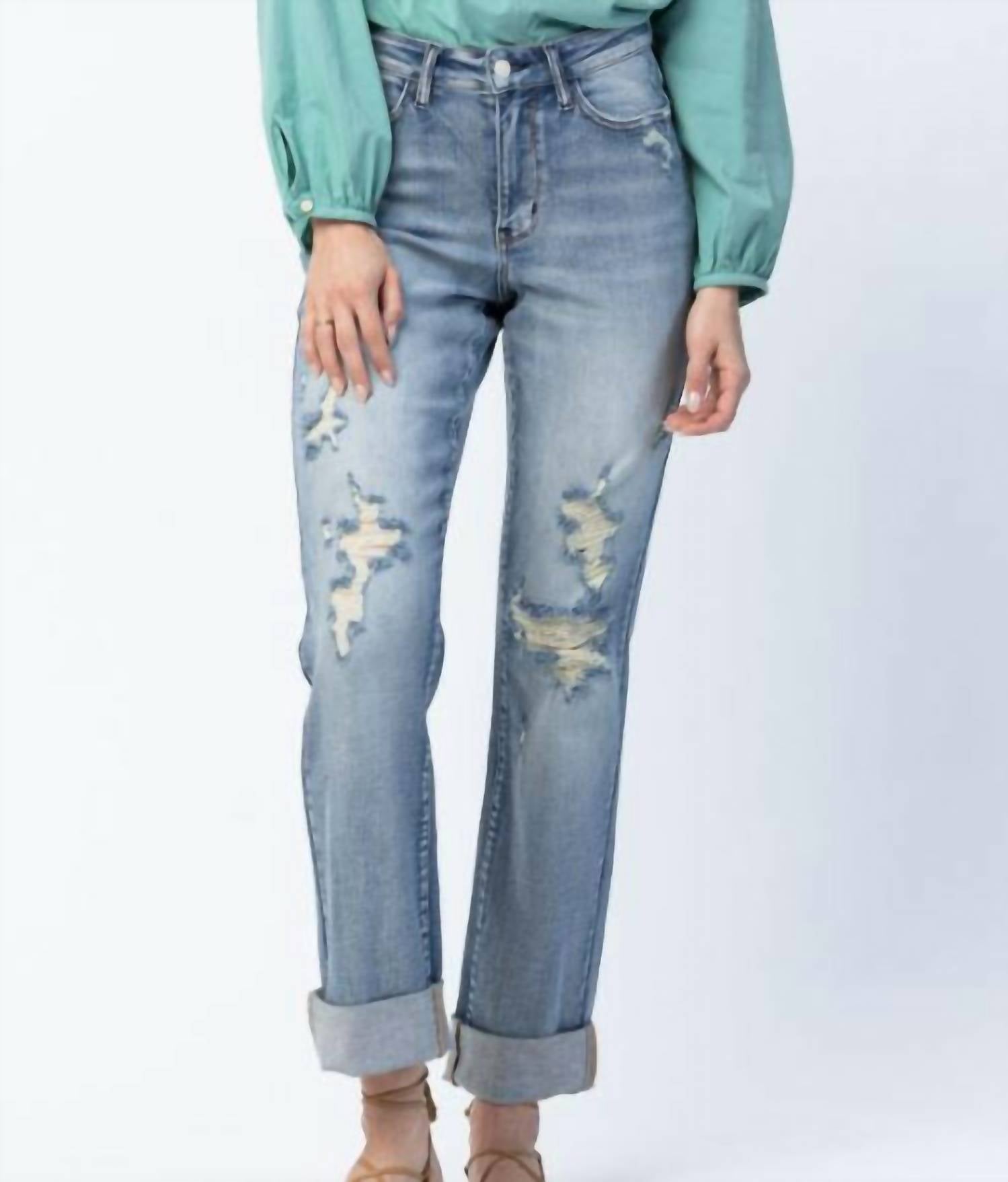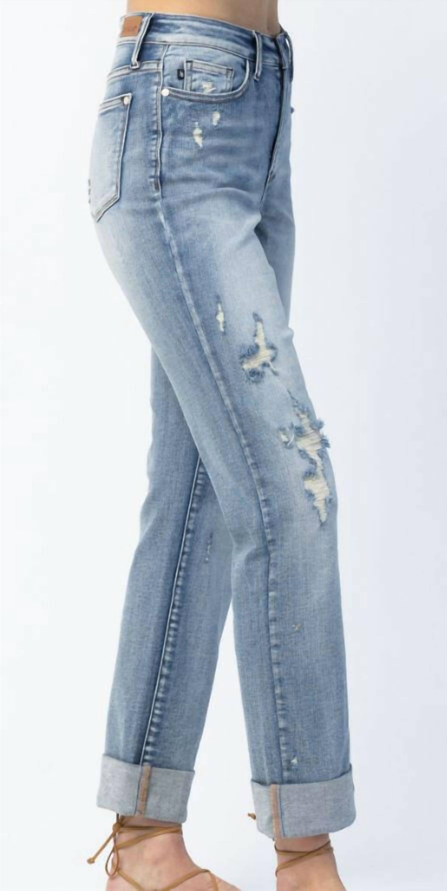 Judy Blue - Double Cuff Fray Hem Boyfriend Jeans