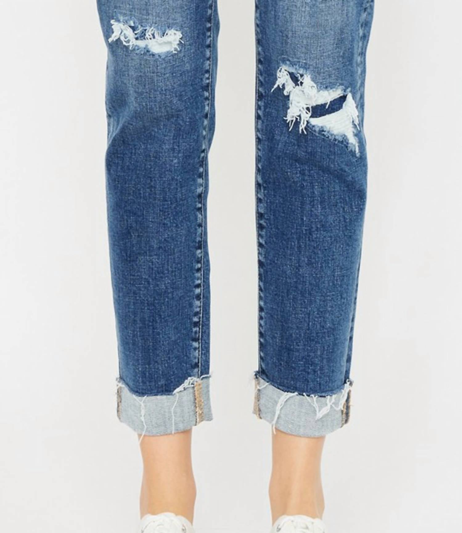 These boyfriend jeans make anything you pair them with look effortlessly cool. Discover the Nina Mid Rise Boyfriend Jeans by KanCan, a perfect blend of style and comfort in a medium wash blue. These jeans feature a relaxed yet tapered fit with a 9.25" rise and a 27" inseam when cuffed. Crafted from 98% Cotton and 2% Spandex, they ensure a comfortable wear, and are designed with a button closure and zip fly. They also feature 3D whiskering, light fading, and functional pockets, making them an effortless staple for any casual wardrobe.