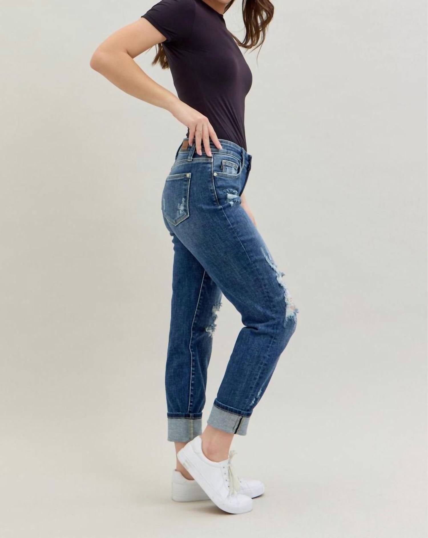 Judy Blue - Mid-rise Cuffed Destroyed Boyfriend Jeans