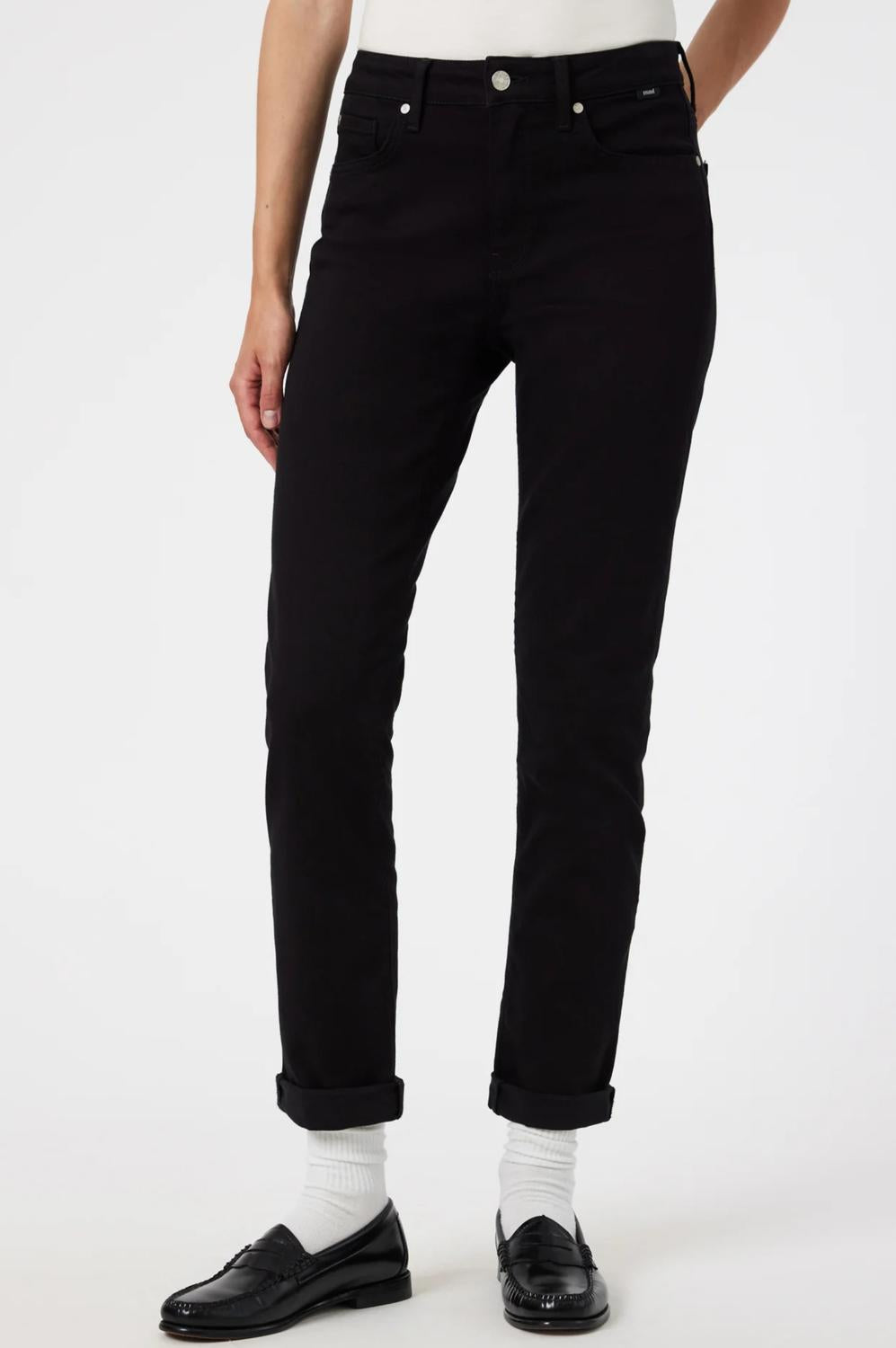 a laid-back feel while still surprisingly form-flattering. Elevate your wardrobe with the Kathleen Slim Boyfriend Jeans by Mavi in striking Black Feather Blue. These jeans feature a relaxed yet flattering straight leg with a high 10” front rise and a breathable viscose blend composition. The 30" inseam makes them ideal for a sleek and comfortable silhouette. Enhance your look with these responsibly crafted jeans, finished with a classic button closure for effortless style.