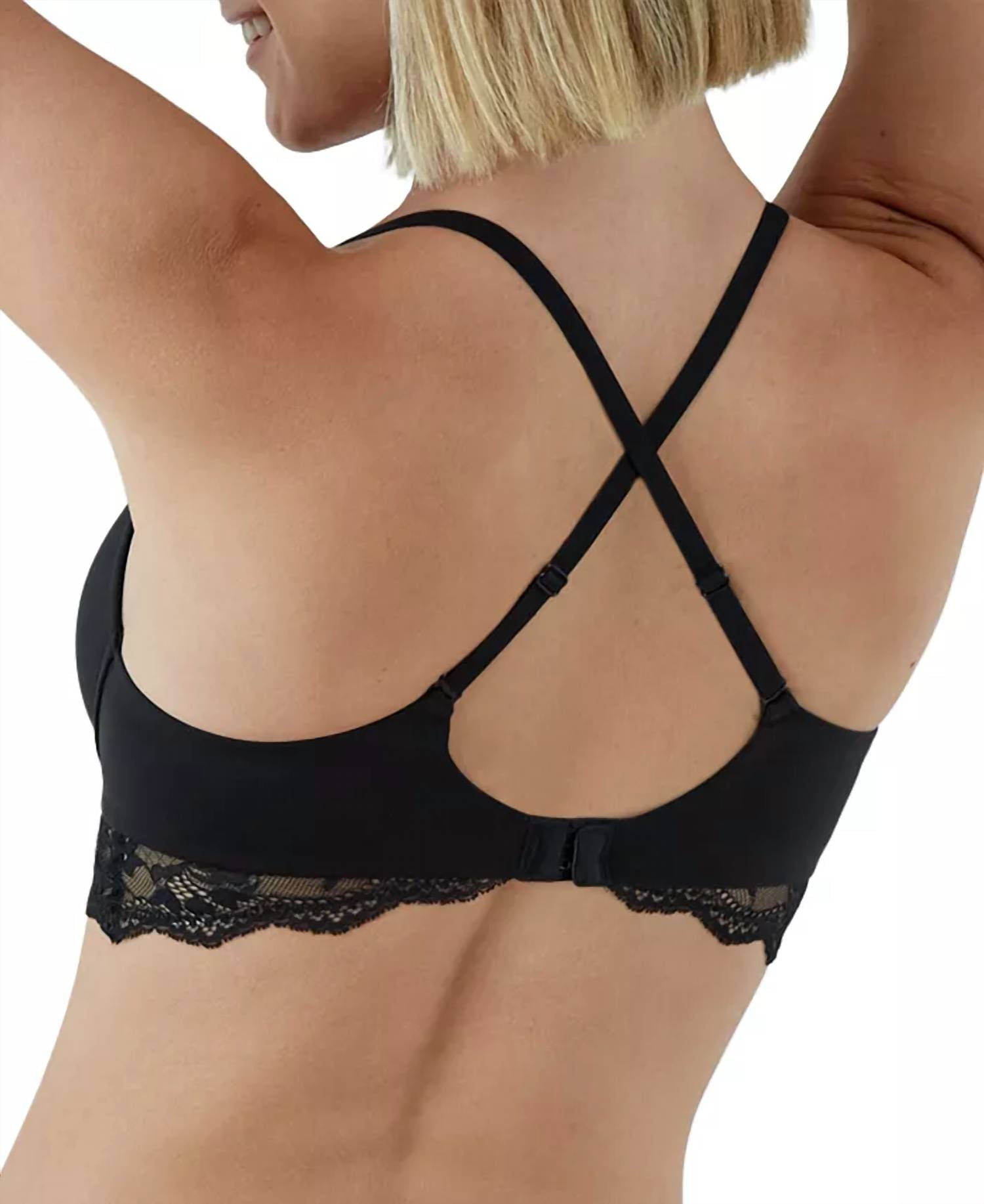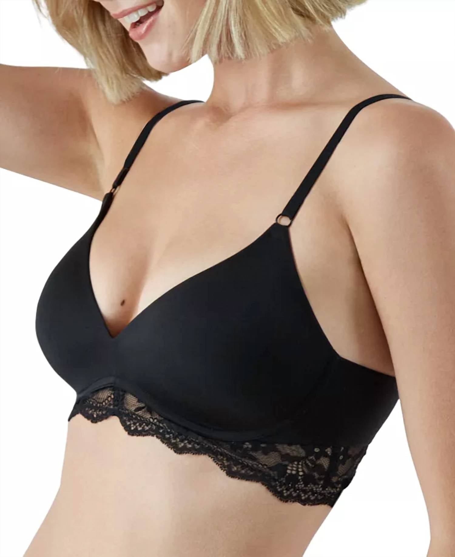 This bra will be your new top-drawer favorite. Scalloped lace trim adds a romantic touch to this super-soft wireless bra that provides a natural lift and flattering shape. Pretty enough for a special occasion, it’s so comfortable you’ll want to wear it every day. This wireless bra was designed with Your Lift™ technology and features plush, natural shaping cups. Plus, its convertible design allows you to wear it traditional or criss-cross for extra versatility. Hand wash. Body: 82% Nylon, 18% Spandex. Lace: 84% Nylon, 16% Spandex.