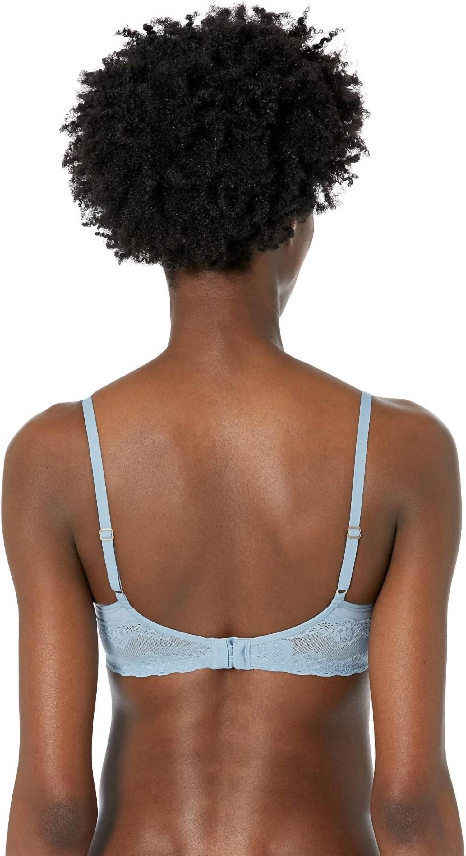 This bra will be your new top-drawer favorite. Introducing the Bliss Perfection Contour Underwire Bra by Natori, a harmonious blend of support and comfort in a chic blue hue. Designed with fully adjustable matte straps and plush lace trim, this bra ensures seamless aesthetics under clothing. Composition: Body includes 62% nylon and 38% spandex, lace comprises 85% nylon and 15% spandex, with a cup lining of 100% polyester. Care for this elegant piece by hand washing and line drying for best results.