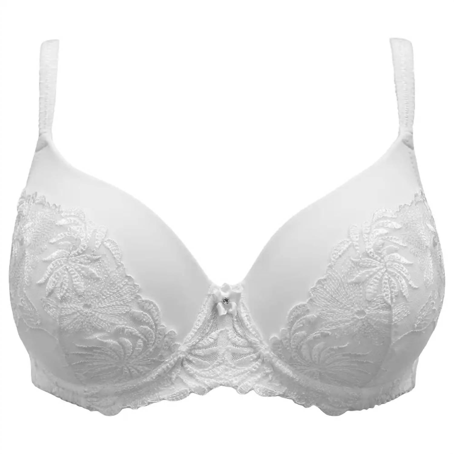 This bra will be your new top-drawer favorite. Discover the elegance of the Pour Moi St Tropez Padded Balcony Bra in timeless white, perfect for women seeking comfort and style. This exquisite bra features underwired, lightly padded moulded cups for superior support, with a balconette shape that enhances a natural lift. Its composition includes 78% Polyamide, 5% Viscose, 1% Polyester, and 16% Elastane, ensuring a soft and comfortable fit. The bra showcases St Tropez signature embroidery, fully adjustable straps, and a soft mesh wing with secure hook-and-eye fastening, while the scalloped lace center and bow detail add a feminine touch. Care for your piece with hand washing instructions.