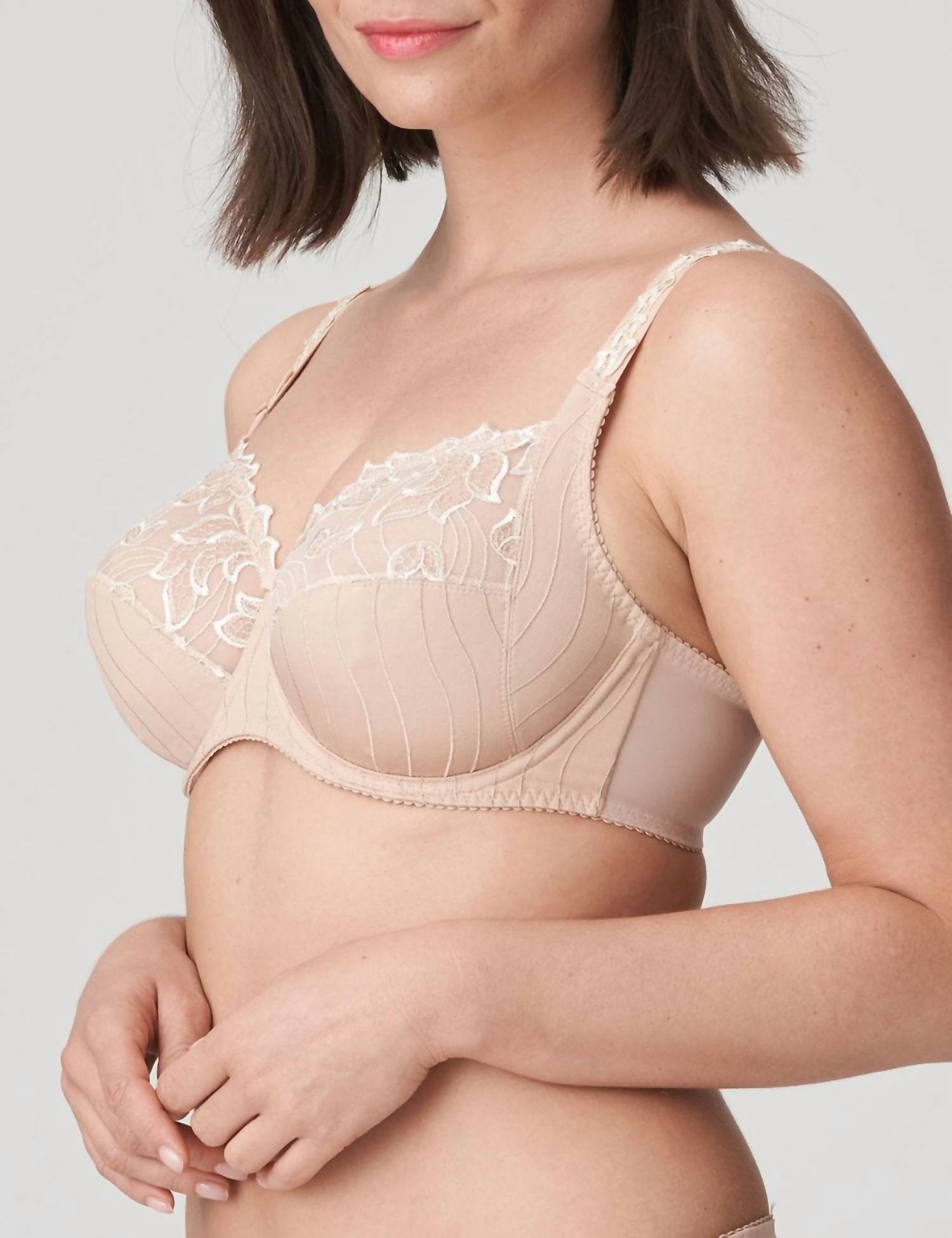 The most comfortable and stylish bra that you'll reach for daily. Discover the PrimaDonna Deauville Full Cup Bra in Caffe Latte, expertly crafted for support and elegance. This women's bra features beautifully crafted 3-panel full cup construction with exquisite lace embellishments, offering both style and functionality. Made from a cotton blend of 52% polyamide, 28% polyester, 13% cotton, and 7% elastane, it ensures comfort and durability while the textured fabric and horizontal side seaming provide a smooth, round look. Perfect for fuller busts, this bra pushes the bust forward and inward for a lifted appearance.