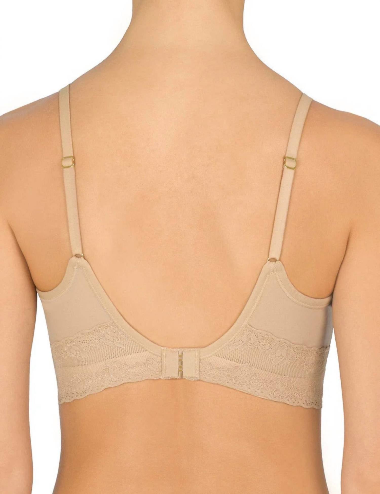 The most comfortable and stylish bra that you'll reach for daily. Introducing the Bliss Perfection Soft Cup Bra by Natori, a standout piece in elegant Light Mocha designed for the ultimate comfort. This wireless bra features stretch foam cups and soft lace, providing all-day comfort with a clean-finished sweetheart neckline that disappears under clothing. Hidden wide flat elastic at the bottom band offers support without wires. Ideal for spring, this patterned bra combines both beauty and functionality for a seamless fit.