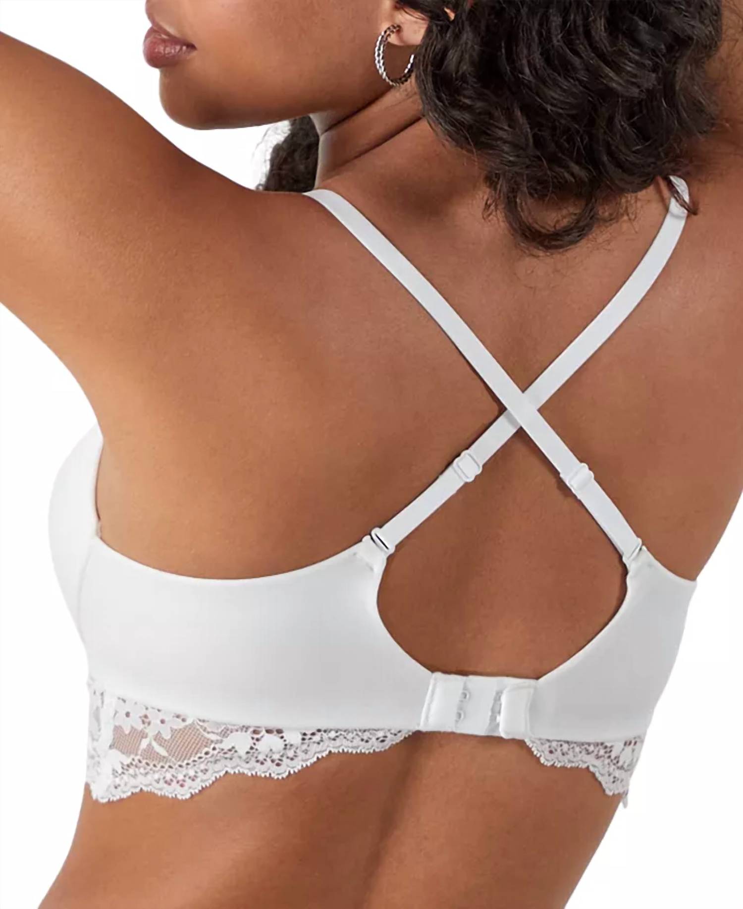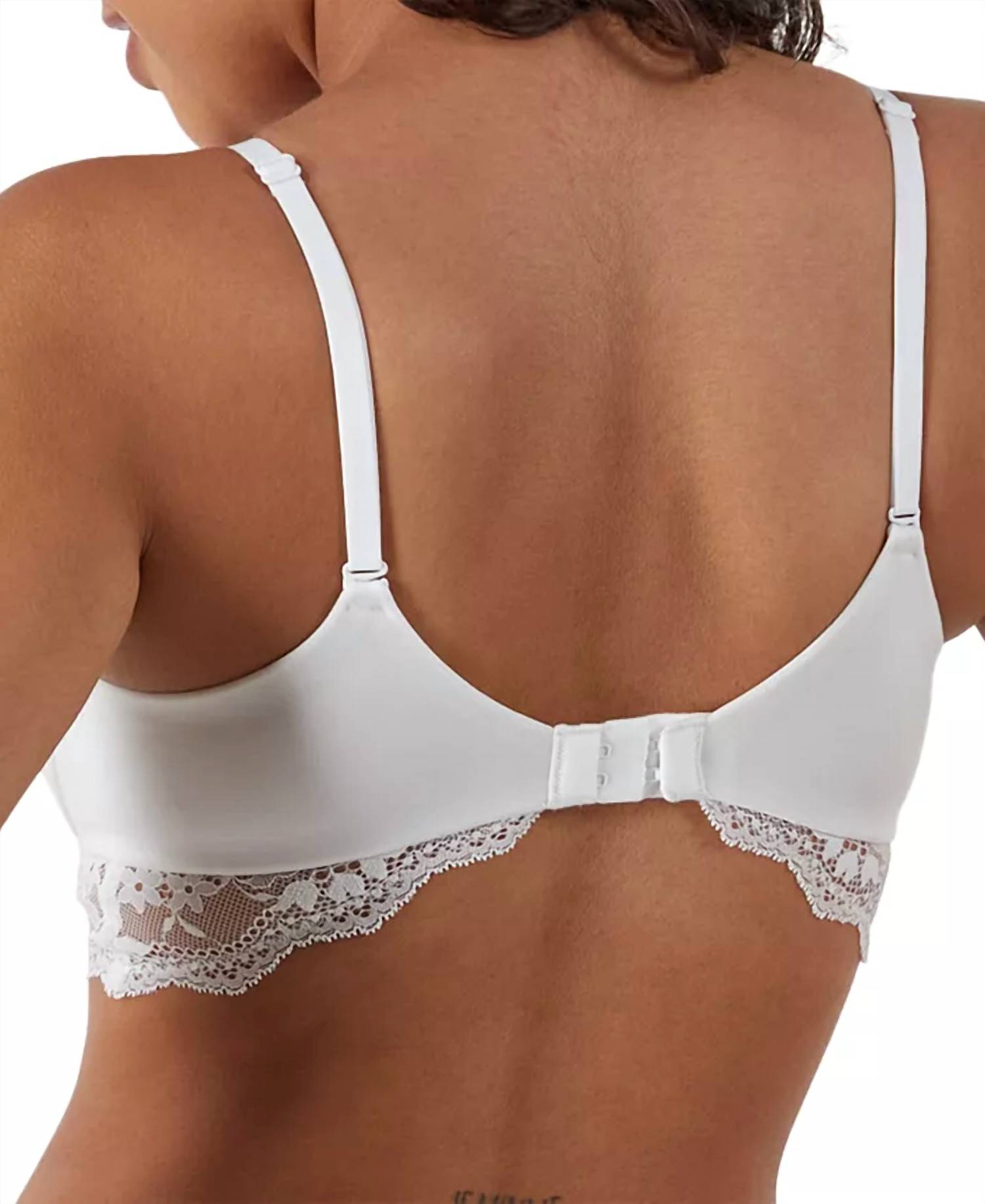 This bra will be your new top-drawer favorite. Scalloped lace trim adds a romantic touch to this super-soft wireless bra that provides a natural lift and flattering shape. Pretty enough for a special occasion, it’s so comfortable you’ll want to wear it every day. This wireless bra was designed with Your Lift™ technology and features plush, natural shaping cups. Plus, its convertible design allows you to wear it traditional or criss-cross for extra versatility. Hand wash. Body: 82% Nylon, 18% Spandex. Lace: 84% Nylon, 16% Spandex.