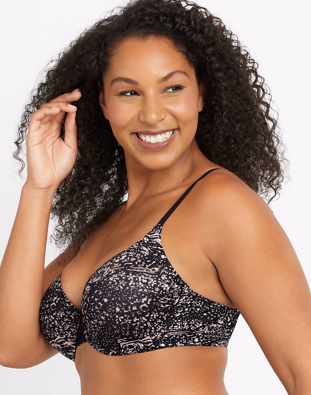 The most comfortable and stylish bra that you'll reach for daily. This comfy underwire bra delivers the shapely push-up support you want without the poking or pinching you don't. It's all done with our cushioned Dreamwire™ technology that encases the underwires between plush foam and soft outer fabric for unmatched underwire comfort. Satiny cups provide no-show smoothness under tees and other knits, with a touch of feminine lace at the center. Plus, it offers convertible convenience, quickly transforming from traditional straight straps to crisscross wear. Hand wash. Body: 75% Nylon, 25% Spandex. Lace: 91% Nylon, 9% Spandex.