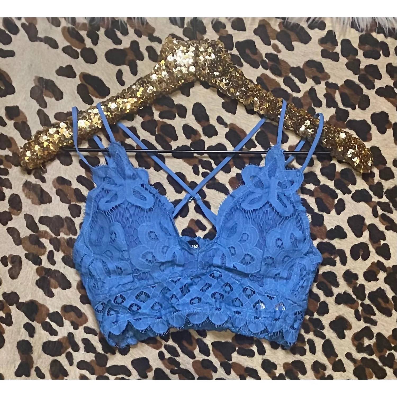Blue B - Women's Blue Boho Crochet Lace Bralette