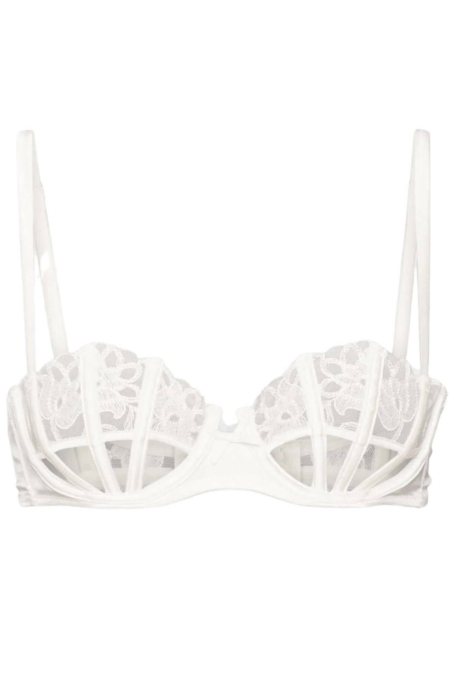 The most comfortable and stylish bra that you'll reach for daily. Discover the Bella Cutout Bra by Fleur Du Mal, an alluring piece with custom vintage-inspired embroidery in ivory. This bra features adjustable silk straps and a seductive bottom cup cutout, framed with silk boning for enhanced support. Crafted from 100% polyamide with a combination of 92% silk and 8% elastane, it offers luxurious comfort. Closure: Back hook and eye. Care: Hand wash only. Perfect for a romantic Valentine’s occasion.