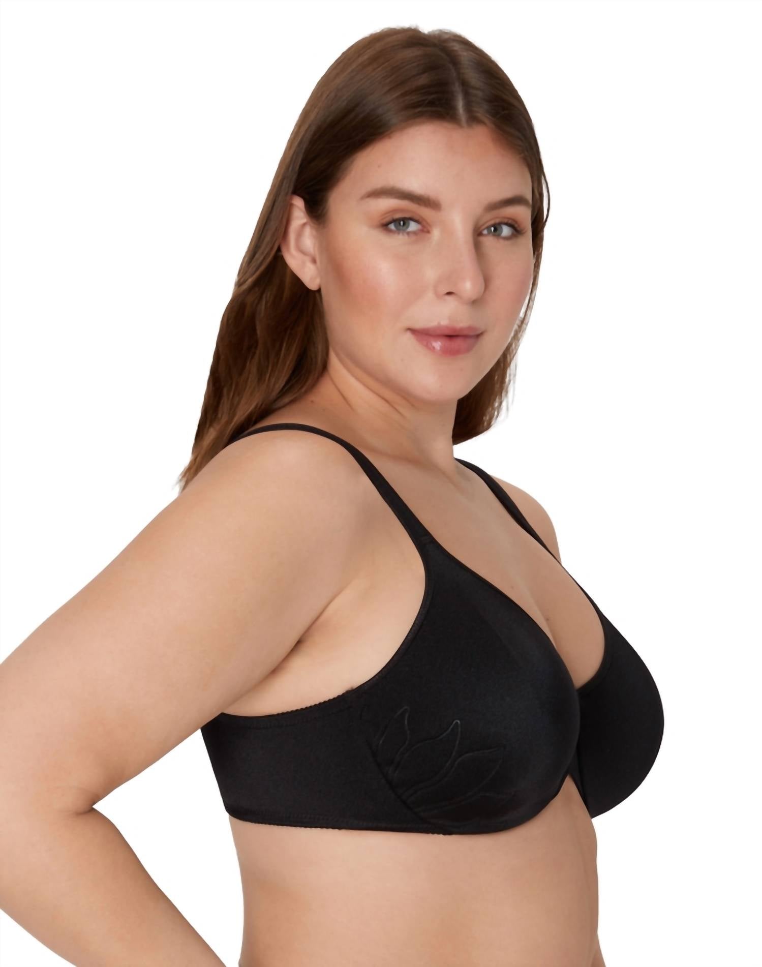 Both pretty and functional. Need we say more? The fabric surface of this seamless bra features a delightful petal pattern that not only looks pretty but also provides lift and side shaping. The smooth cups ensure a comfortable fit throughout the day. Comfort cushion straps pamper your shoulders while the soothing inner lining feels gentle against the skin. Plush-wrapped wires add an extra level of comfort, as well as the support you need. A comfortable underwire bra that enhances lift and side shaping. Hand wash. Nylon, Polyester, Spandex, Cotton.
