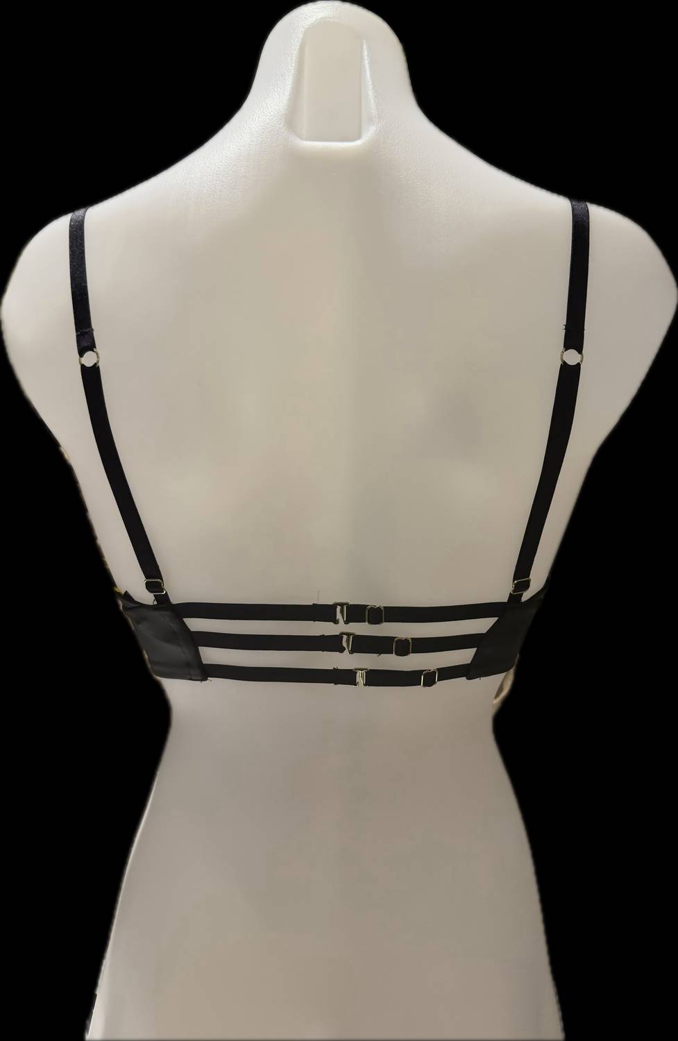 This bra will be your new top-drawer favorite. This bralette has a stretch design with ring hardware detailing in gold tone and molded cups. It features adjustable spaghetti straps, an adjustable strap at the back, and an adjustable fit. The fabric composition is 89% polyamide, 11% spandex/elastane, 50% polyurethane, and 50% polyester.