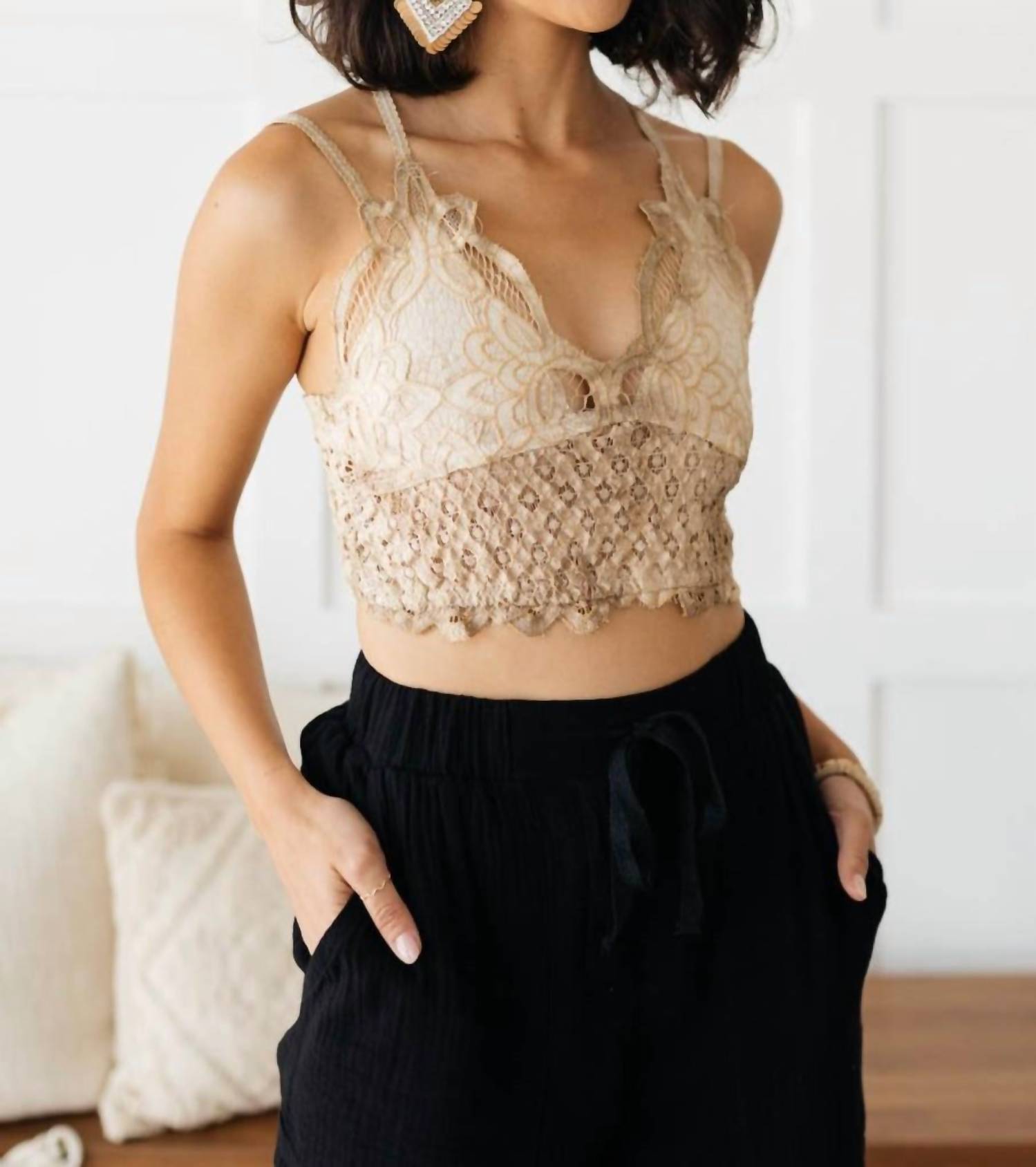 Both pretty and functional. Need we say more? Medium support bralette. Lightweight. Stretchy Material. Double Adjustable Straps. Self: 100% Polyester. Contrast: 94% Rayon, 6% Spandex. Wash Cold, Hang Dry. Fits True To Size.