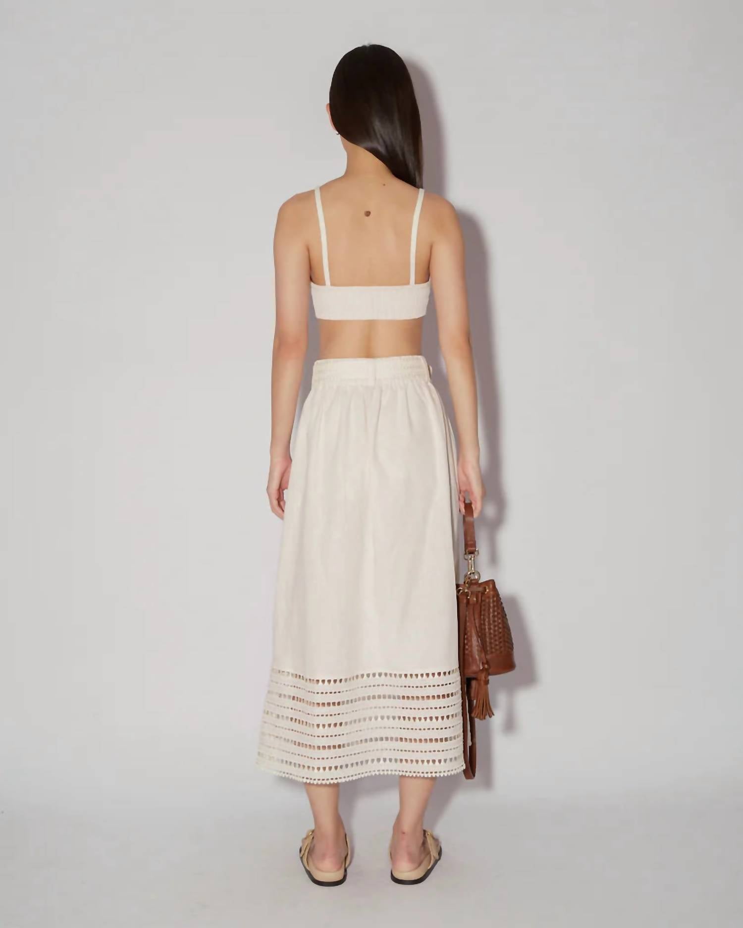 Both pretty and functional. Need we say more? Discover the Josephine Bra by Magali Pascal, a timeless summer essential in blush. Crafted from a soft viscose linen blend, it boasts a form-fitting design with an elegant V-neck, complemented by thin straps and a textured rib knit pattern. Care: Cold hand wash, do not bleach, cool iron on reverse, do not tumble dry. Designed for women, this versatile piece can be effortlessly paired with Magali Pascal bottoms for a chic vacation look. Model is 5'8" wearing a size small.