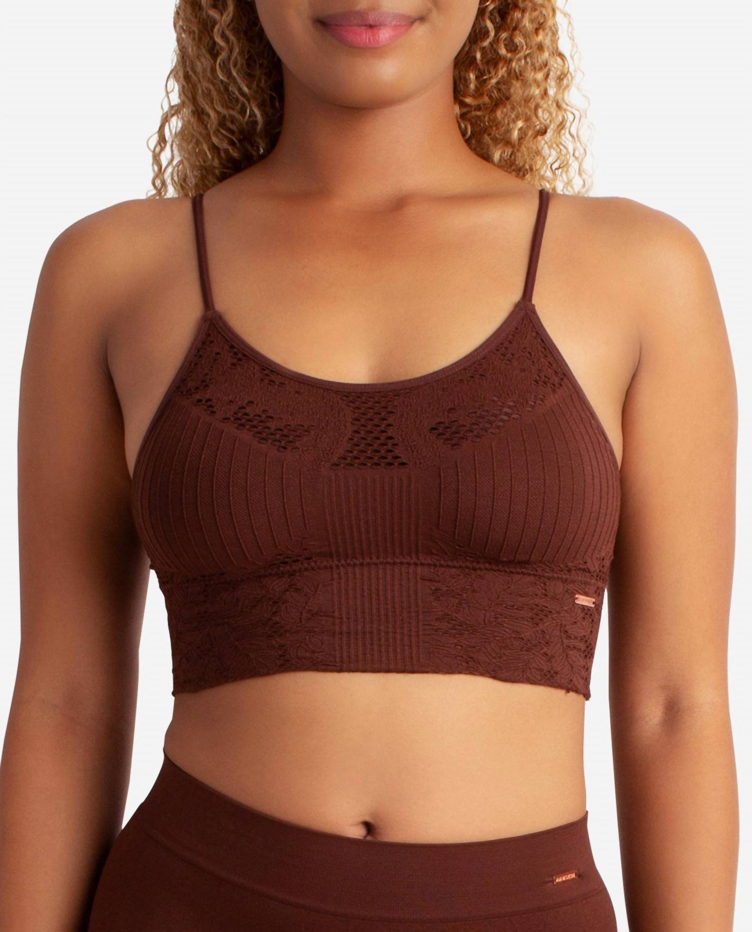 The most comfortable and stylish bra that you'll reach for daily. The 2-Pack Crochet Seamless Bralette by Danskin is perfect for your summer travels, offering both comfort and style in a vintage 90s fashion. This set includes two bras with adjustable straps and removable cups, crafted from a textured blend of 90% Polyester and 10% Spandex. Available in the colors Desert and True Brunette, these bralettes promise a seamless fit. Care for them easily with a machine wash as instructed.