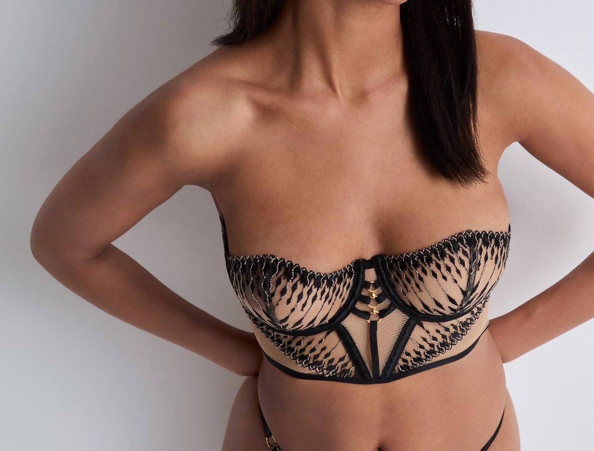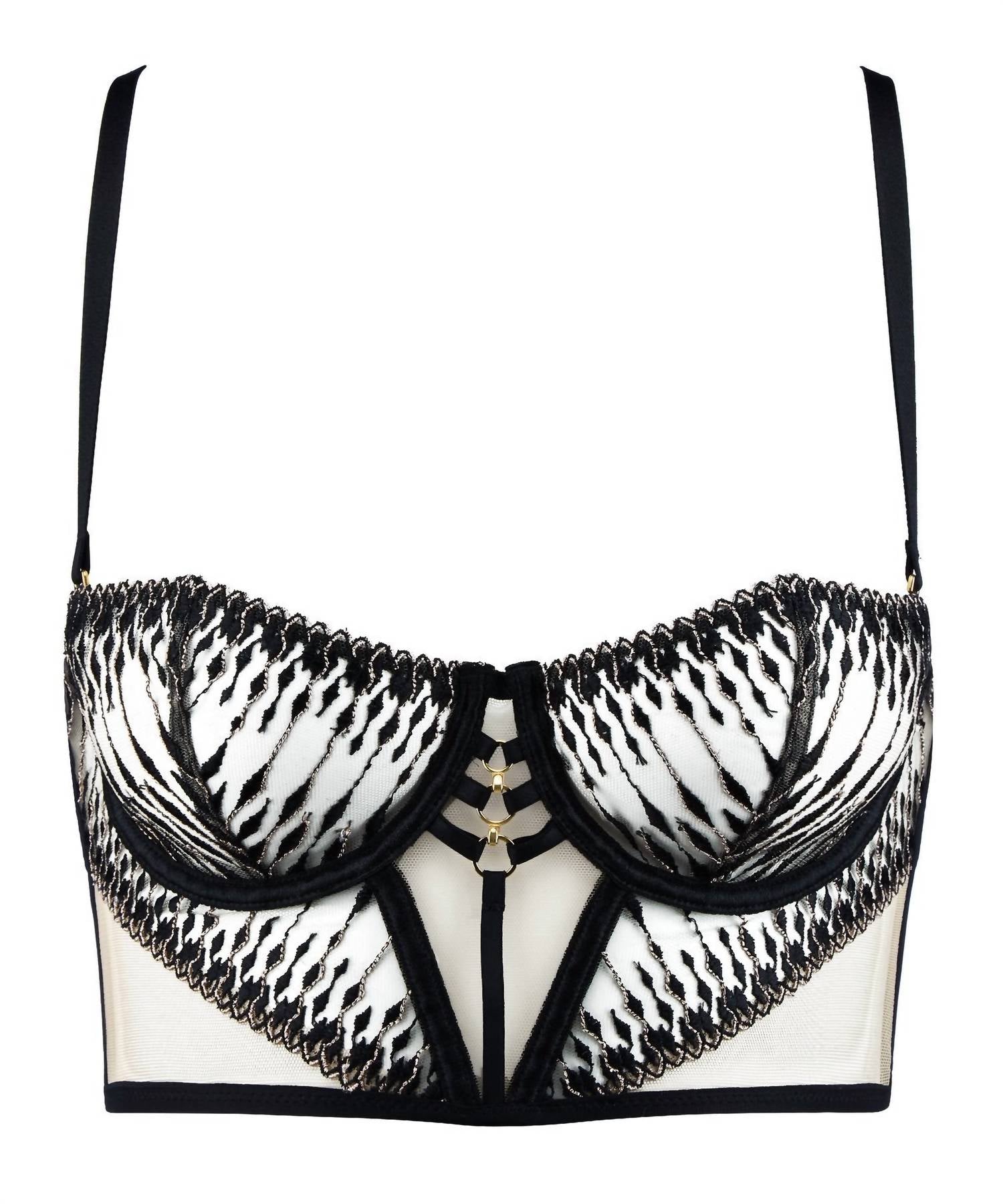 This bra will be your new top-drawer favorite. Unveil your allure with the Voodoo Kiss Bustier Top by Aubade, crafted in a sophisticated Millennium Black. Designed for the modern woman, this textured bustier is made from luxurious Embroidery: 85% Polyester, 15% Polyamide, Lining: 100% Polyester, Mesh: 82% Polyamide, 18% Elastane, perfect for adding an edge to your spring wardrobe. Care is straightforward with a simple hand wash routine. Embrace the ultimate fusion of fashion and comfort with this distinctive piece.