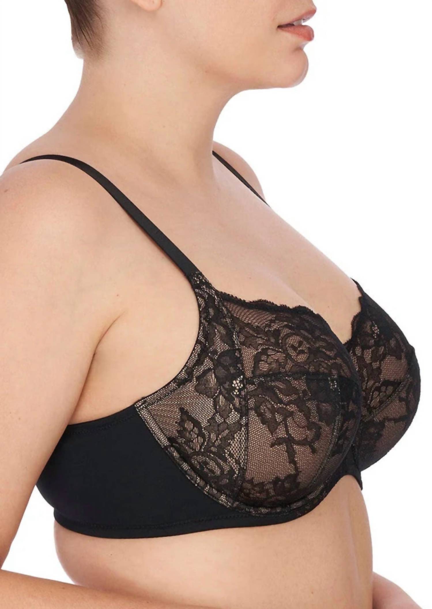 This bra will be your new top-drawer favorite. Introducing the Statement Full Figure Bra by Natori, a perfect blend of support and elegance in the dreamy shade of Lilac. Designed with semi-rigid, shiny adjustable cushioned straps and a four-piece full coverage lace cup, this bra delivers a comfortable lift without bulk. Crafted from a blend of lace and body fabric composed of nylon, polyurethane, polyester, and spandex, it features a wide stretch fabric back for tag-free comfort. Care for this delicate piece by hand washing and line drying to maintain its minimalist charm.