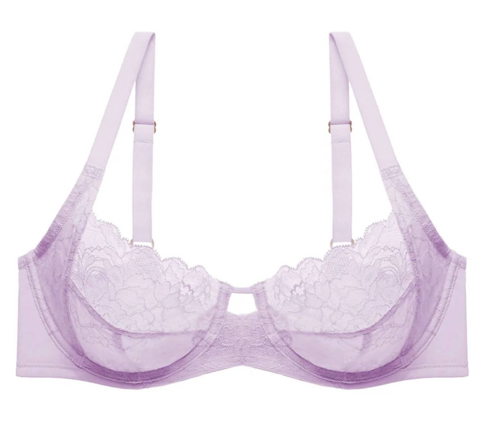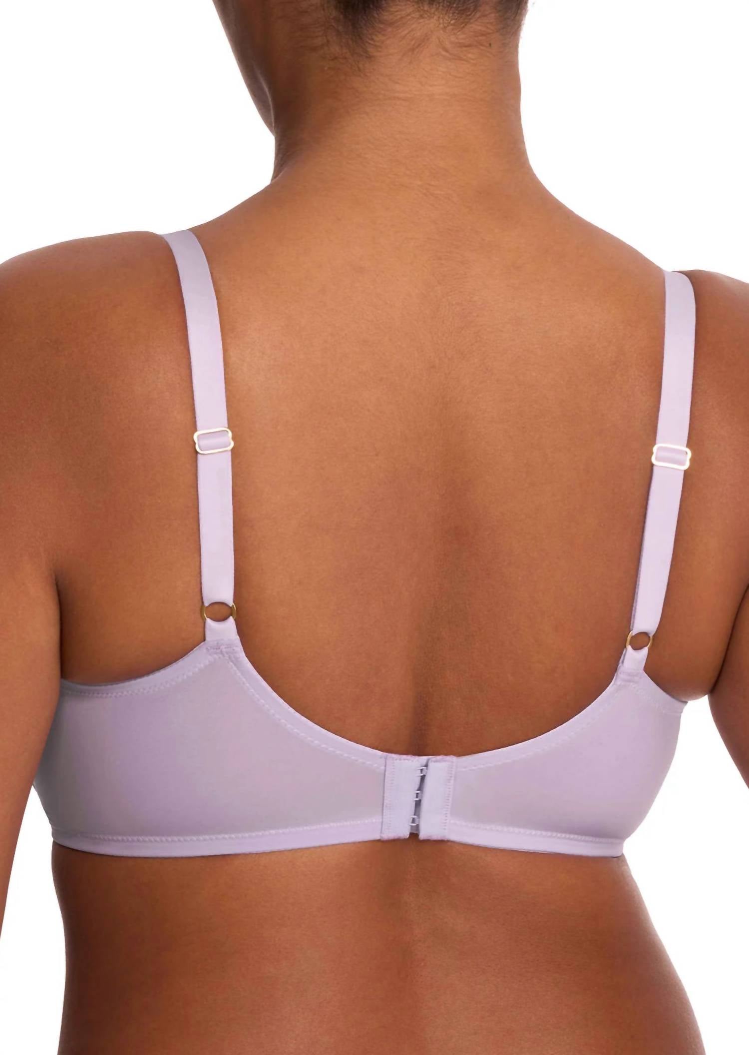 This bra will be your new top-drawer favorite. Introducing the Statement Full Figure Bra by Natori, a perfect blend of support and elegance in the dreamy shade of Lilac. Designed with semi-rigid, shiny adjustable cushioned straps and a four-piece full coverage lace cup, this bra delivers a comfortable lift without bulk. Crafted from a blend of lace and body fabric composed of nylon, polyurethane, polyester, and spandex, it features a wide stretch fabric back for tag-free comfort. Care for this delicate piece by hand washing and line drying to maintain its minimalist charm.