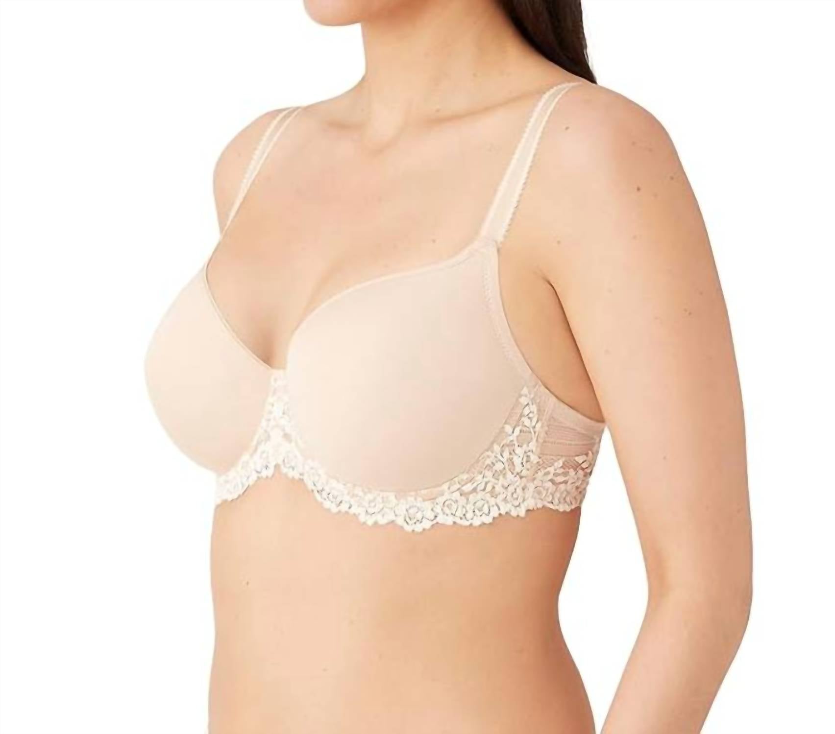 Both pretty and functional. Need we say more? Elevate your lingerie collection with the Wacoal Embrace Lace Contour Bra, an exquisite blend of seamless functionality and lacy luxury. This naturally nude/ivory bra features foam contour cups, ensuring a smooth and shaped profile supported by underwires, free from additional inserts like cookies or panels. Made from a premium nylon blend, the sheer lace wings and smooth cups present a flawless look under clothes, with adjustable straps in the back for a custom fit. Care for your bra with hand washing and line drying to maintain its delicate style.