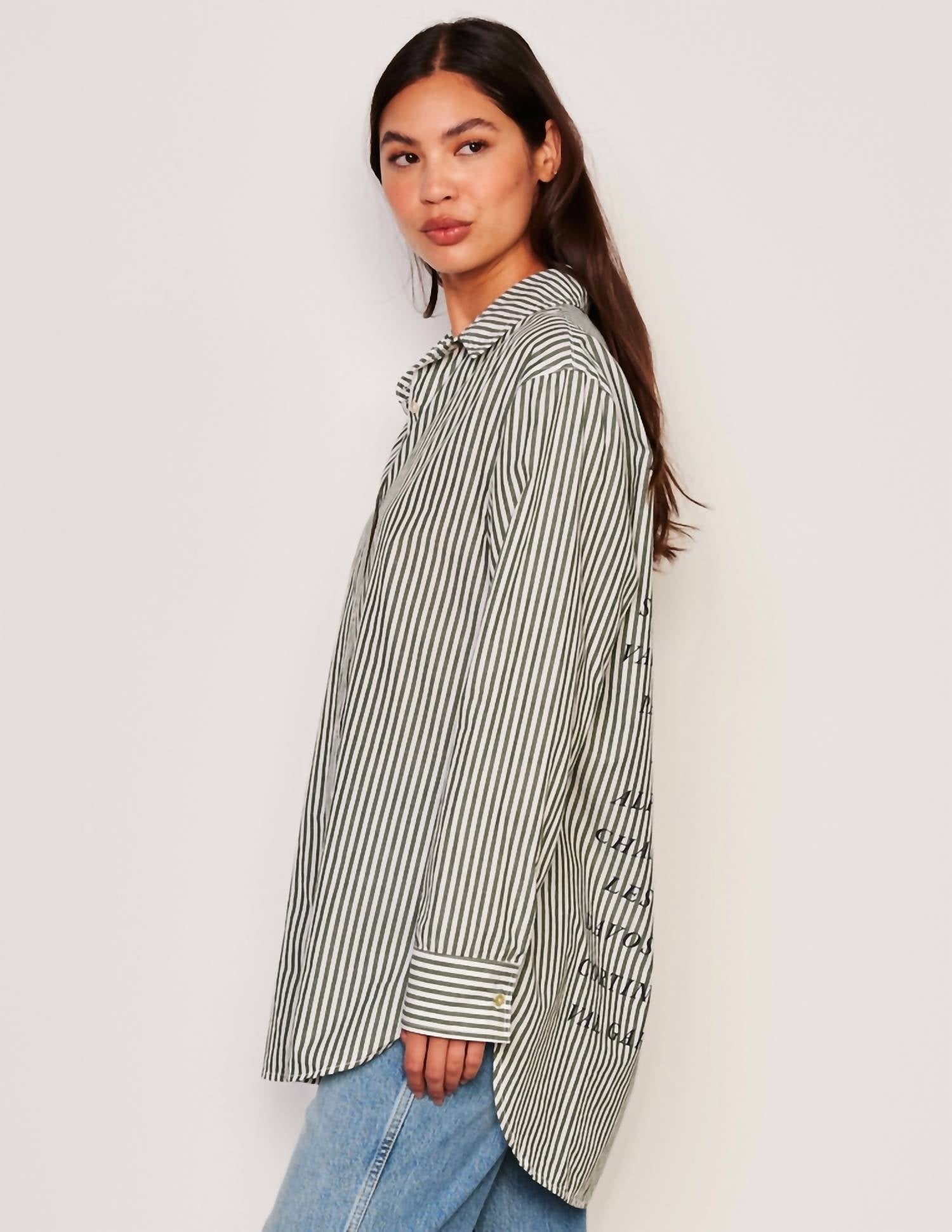 This button down shirt is comfortable yet polished. Discover the Classic Shirt by Sundry, a striking piece with a vibrant graphic that promises a unique handprinted feel. This women's shirt is crafted from 100% cotton with a fashionable stripe pattern, perfect for summer workwear. Designed with long sleeves and a classic collar, it features a convenient button closure. Made in the USA, it ensures style without fuss with easy machine washing and low-heat tumble dry care.