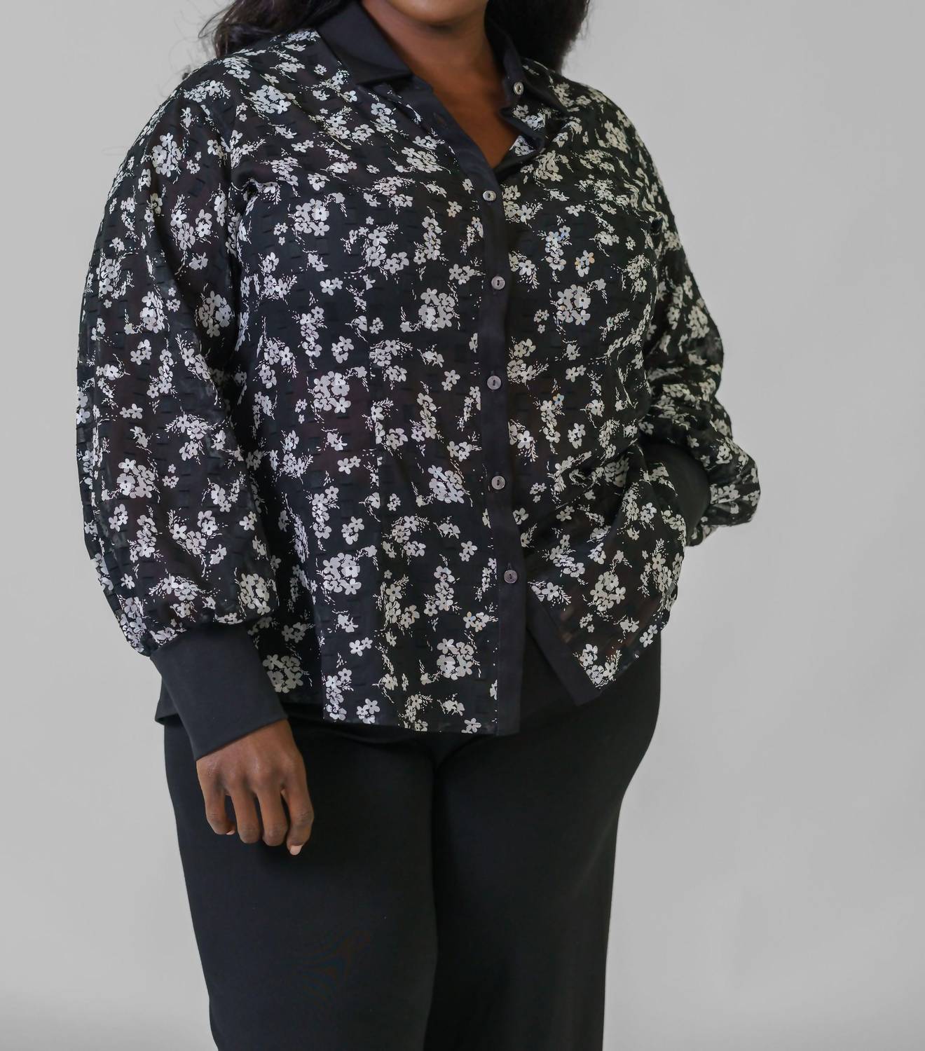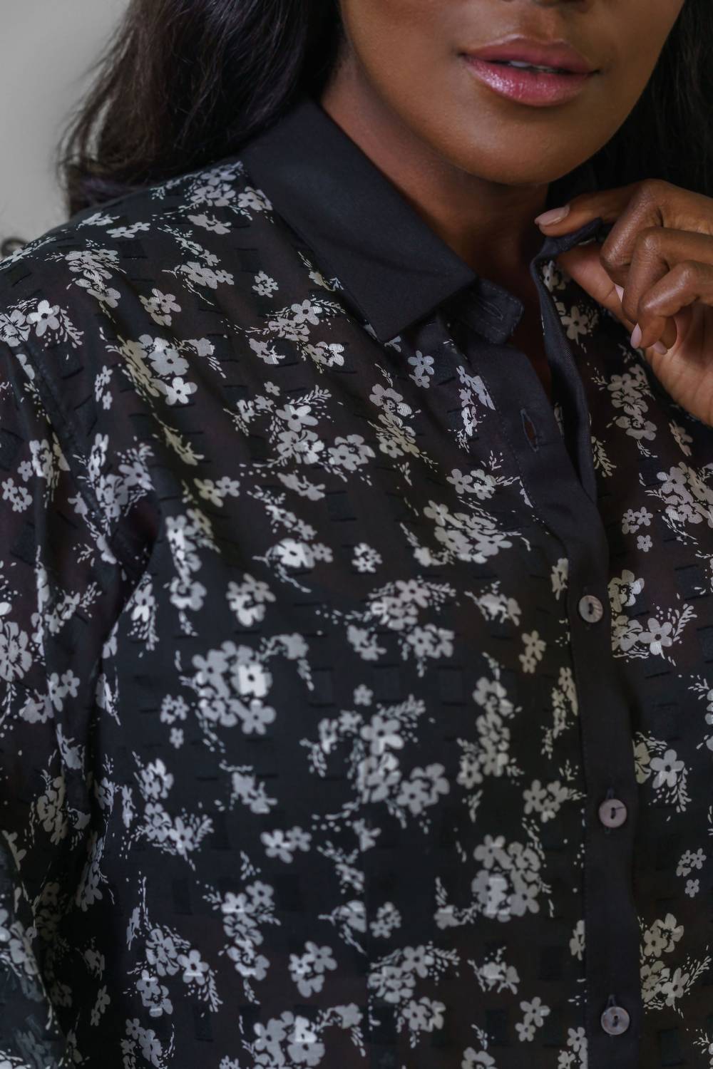 Perfectly tailored and soft to the touch. Embrace style and sophistication with the Jill McGowan Mere Travel Knits Button Down Shirt in a striking floral pattern. Designed for plus-size women, it features long sleeves and a classic collar, all crafted from 95% Cotton 5% Lycra. The shirt comes with a convenient button closure for easy wear, ideal for spring workwear or a dinner party during Easter. Care instructions include hand washing and line drying, ensuring it stays in pristine condition.