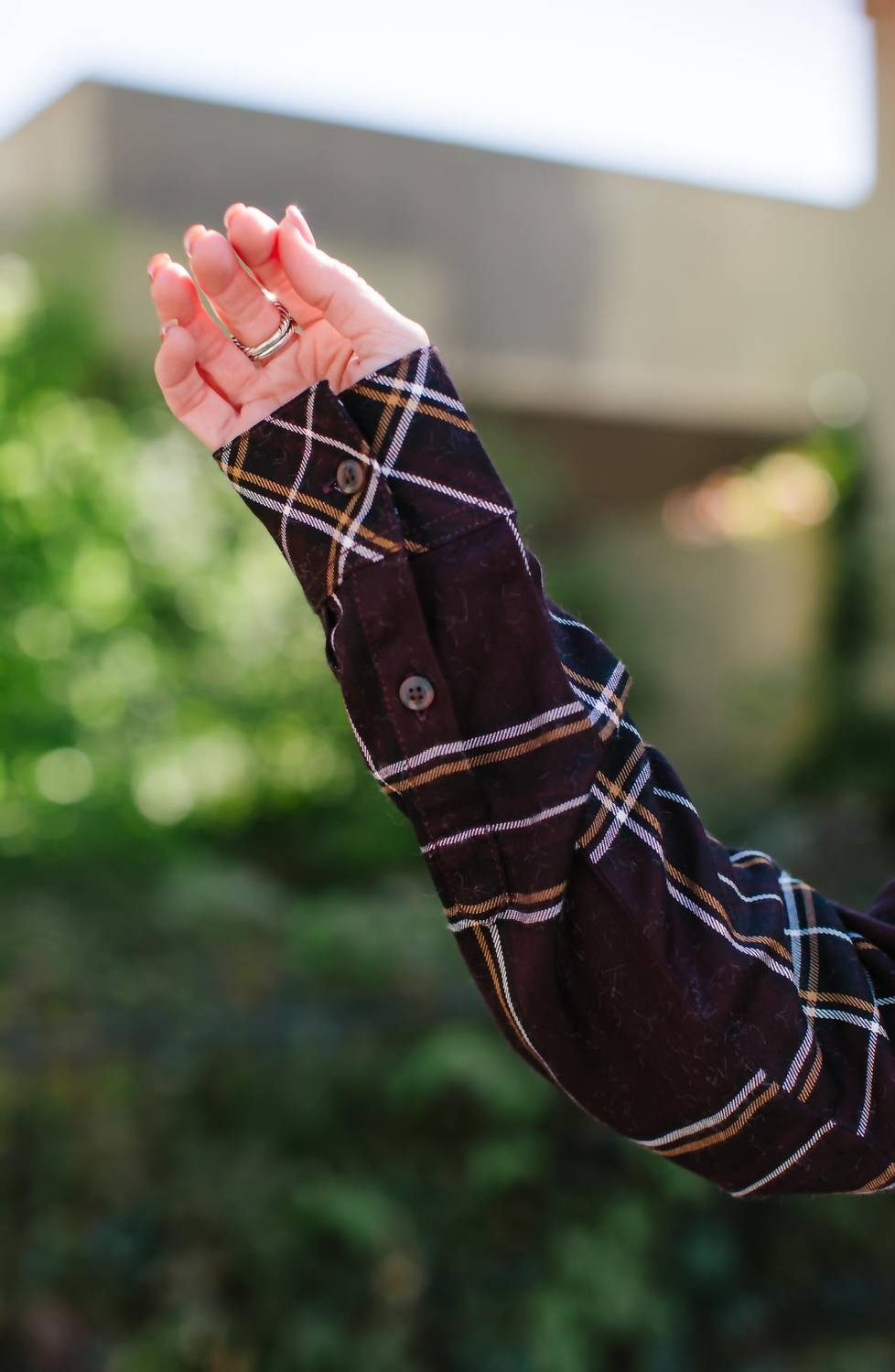 Details:Full button frontCollarLong sleeve with button closureTwo front pocketsRounded hemlineSoft, flowy materialRelaxed fitRuns true to sizeSleeve length 21"Total length 26.5"Shoulder 16"Perfect for the office or the weekendModel Details:Height: 5'4"Bust: 32"Waist: 26"Hips: 32"Wearing size XSCare Instructions:Machine wash cold or gentle cycle Wash with like colorsDo not bleachDry flat or hang dryLow iron or steam