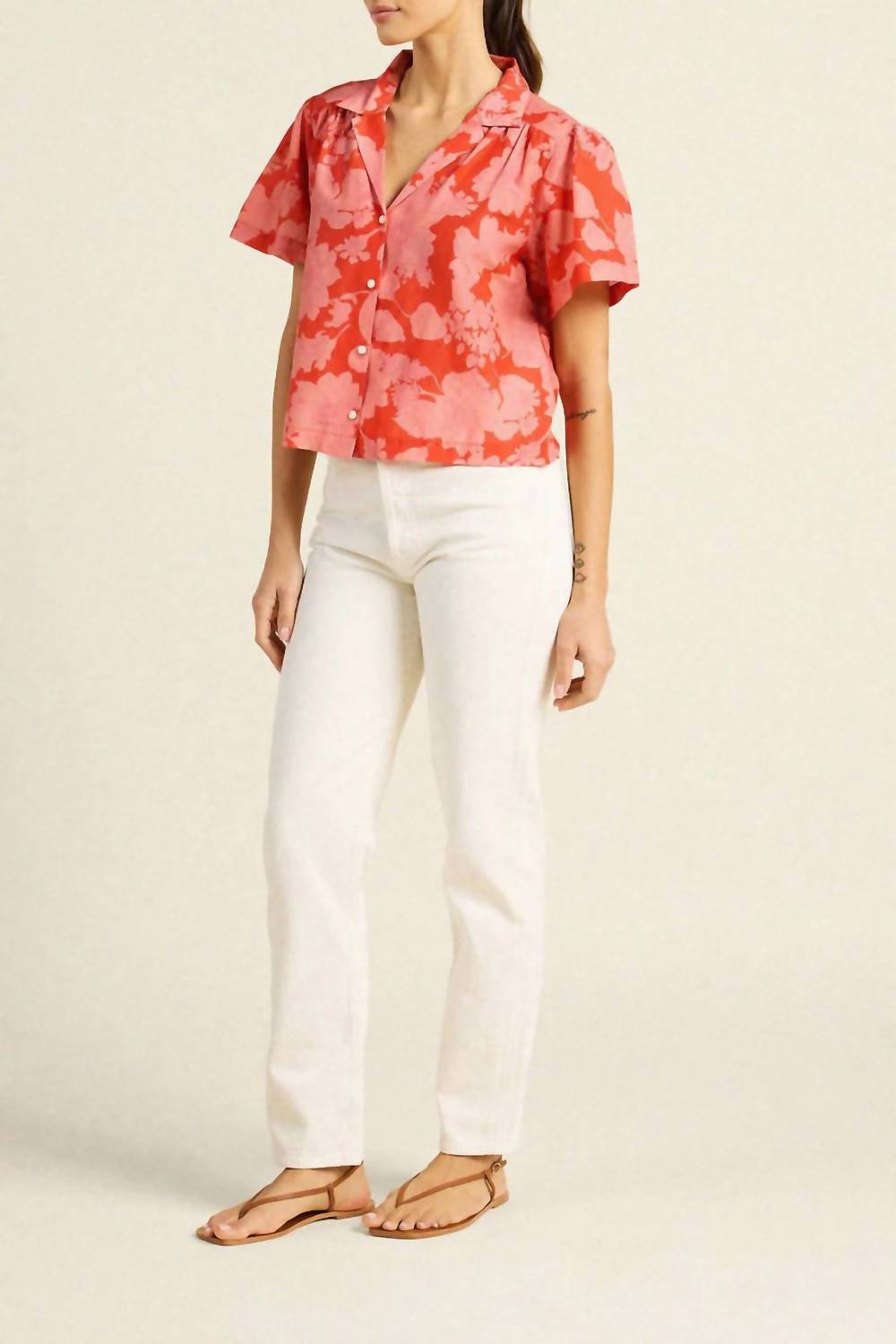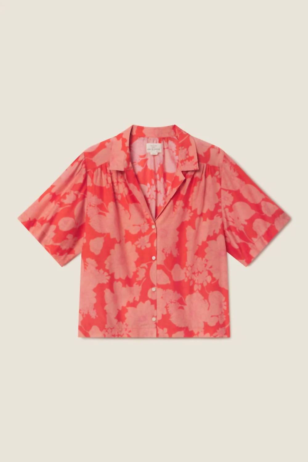 A classic button down shirt that will never go out of style. Discover the vintage charm of the Helene Blouse by Trovata in a soft Roseglow hue, perfect for a touch of Boho Chic elegance. Featuring short sleeves and a crisply folded collar, this button-down shirt is composed of a breathable 70% Cotton, 30% Silk blend, tailored for summer vacations and relaxed occasions. Designed in California and perfect for light layers, it ensures modern comfort without compromising on style. Care for your blouse with ease: machine wash cold, tumble dry low, and medium iron as needed. Model is 5’7” and wearing a size S.
