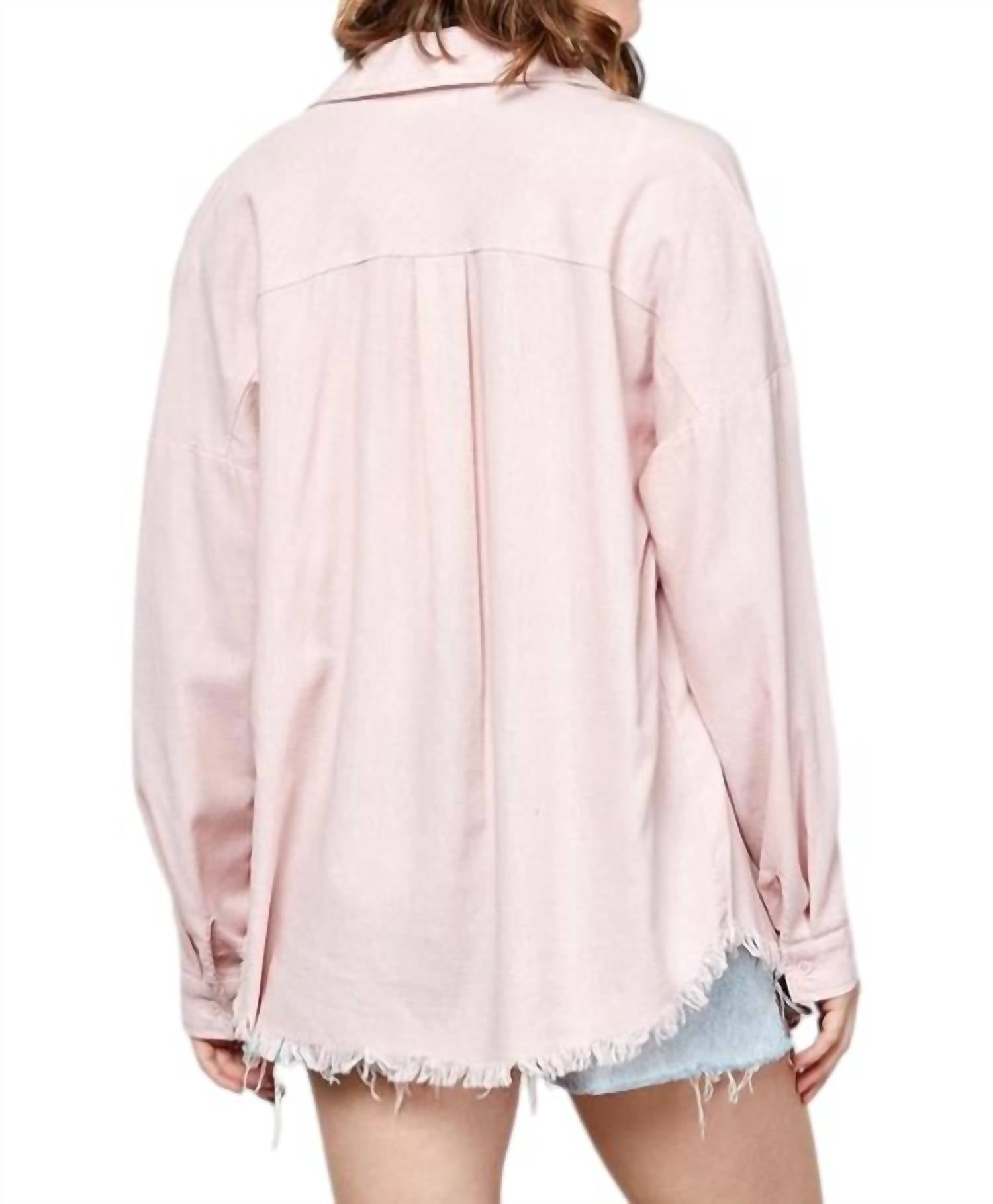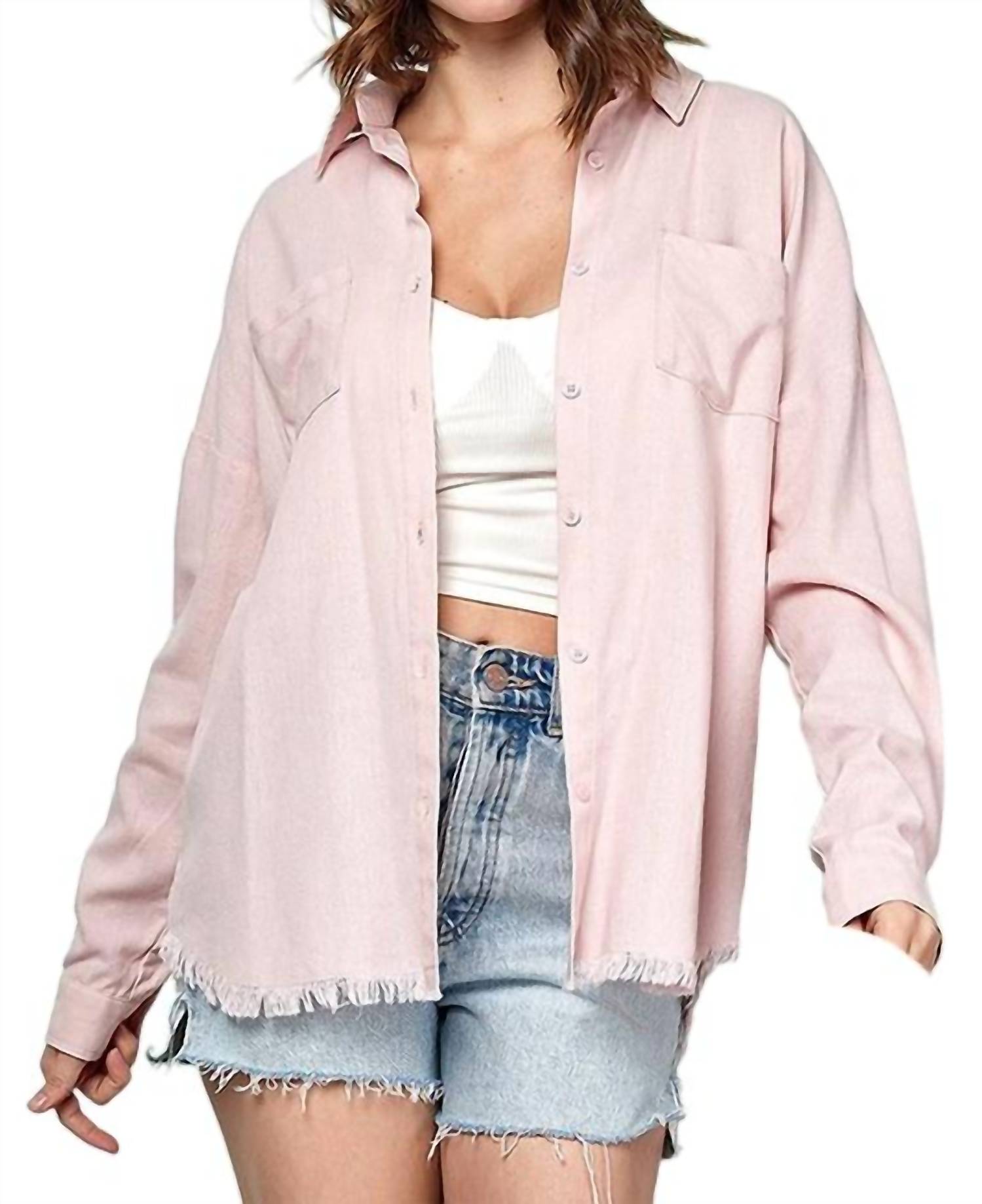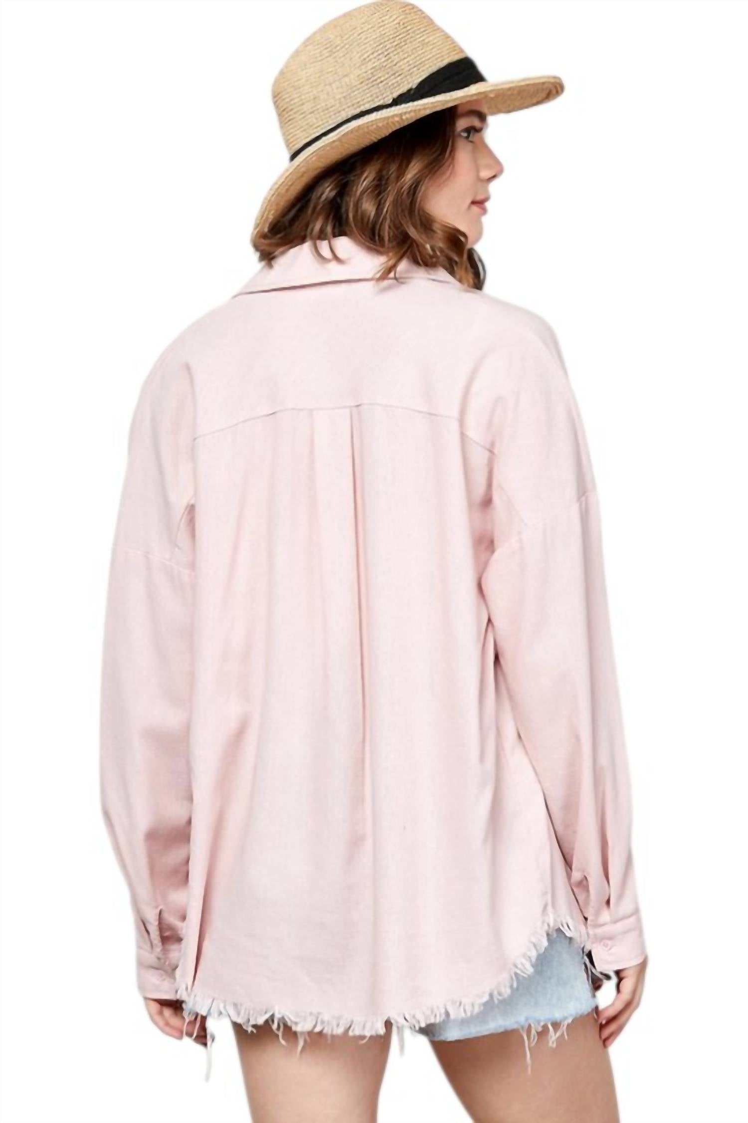 This button down shirt is comfortable yet polished. Crafted for chic plus-size fashionista. Long sleeve piece offers a classic collar neckline. Button closure for a timeless silhouette. Designed with a raw hem and practical pockets. Made from luxurious linen for breathable comfort. Seamlessly blends style with functionality.