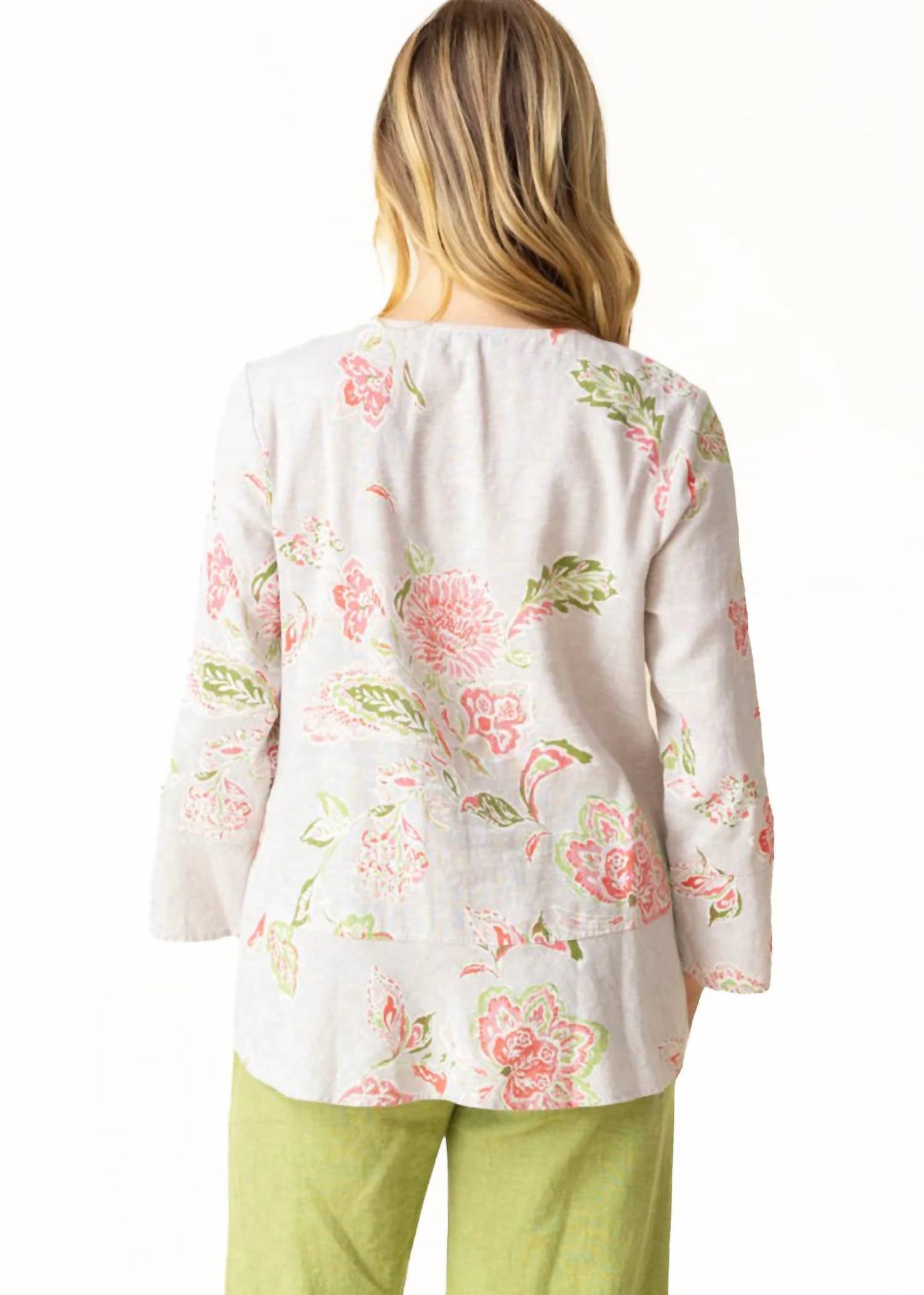 This button down shirt is comfortable yet polished. Introducing the Linen Bloomer Ali Jacket by Habitat, a versatile piece in oatmeal that combines boho chic with casual elegance. This long sleeve button-down shirt features a vibrant floral pattern that seamlessly transitions from the office to a relaxed beach day. Crafted from a cotton blend in fresh, breathable linen, it embodies a modern, relaxed style. Closure: Button closure. Care: Machine wash, tumble dry.
