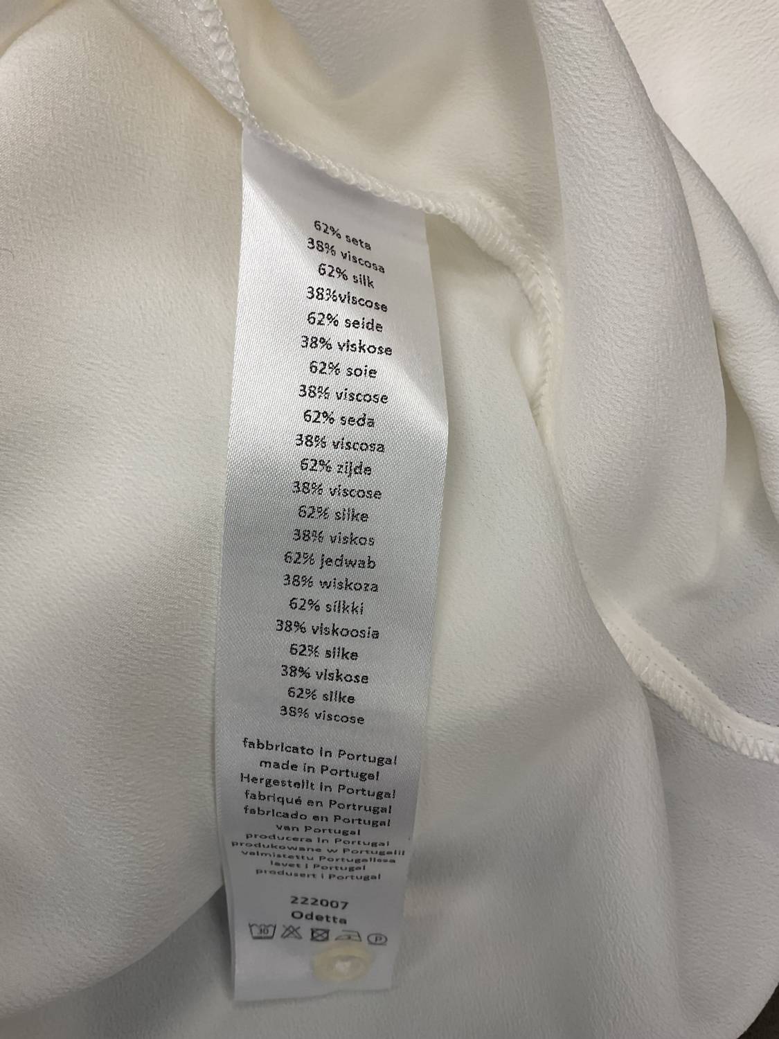 Great quality bottom down cream shirt. Made in Portugal. 62% silk, 38% viscose