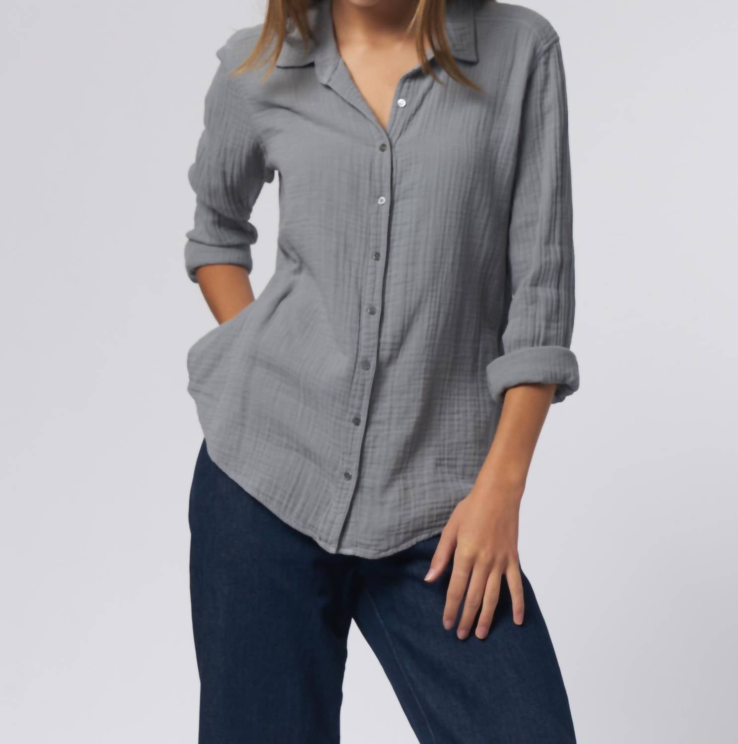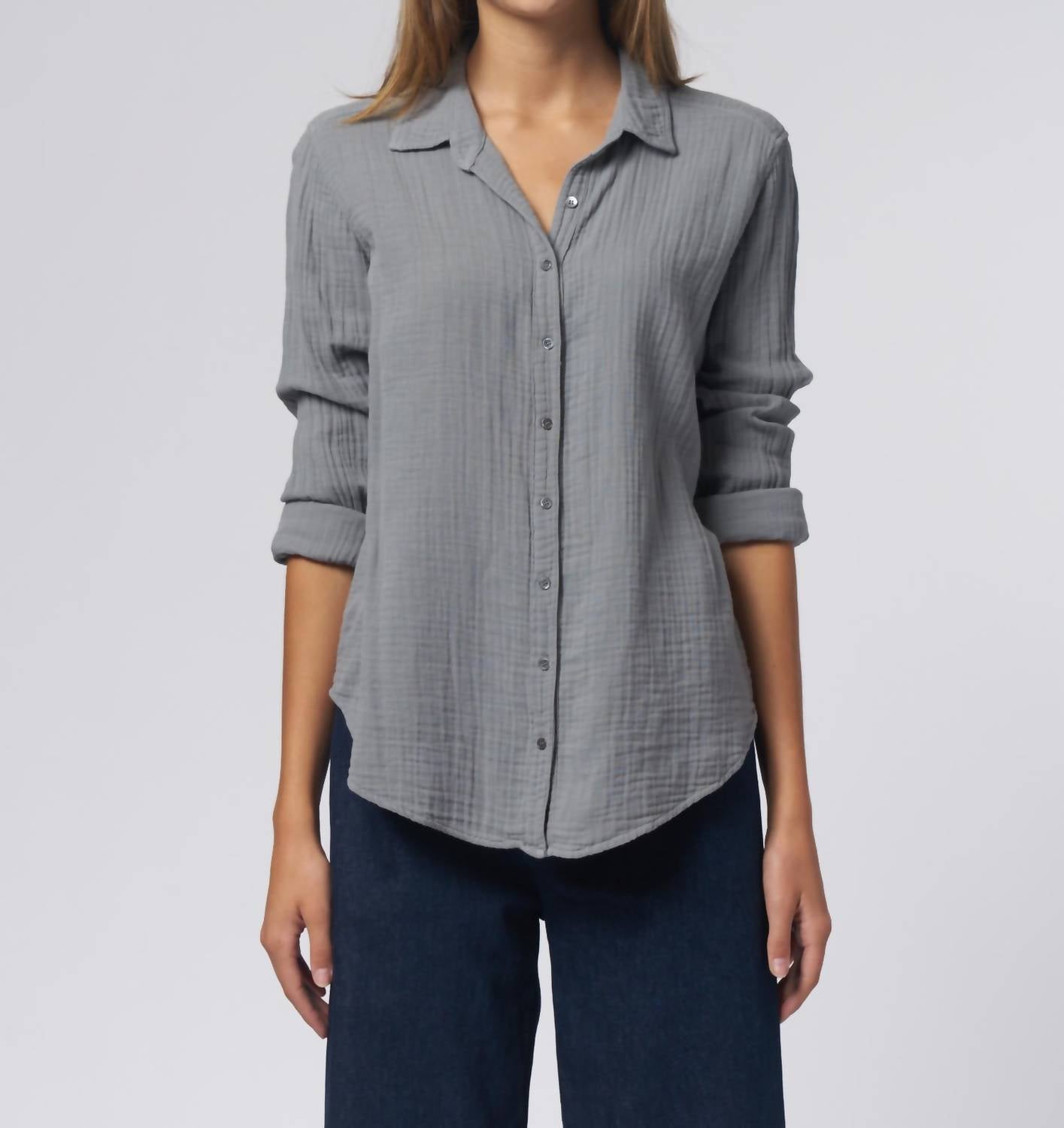 This button down shirt is comfortable yet polished. Introducing the Scout Shirt by XIRENA, a timeless addition to your wardrobe in the versatile Half Moon hue. Crafted from 100% cotton, this long sleeve button-down features the brand's iconic Chelsea Gauze that feels soft against the skin. Made in Los Angeles, its easy fit suggests purchasing in your true size for the best look. Care for it effortlessly with a machine wash on cold and gentle cycle, lay flat to dry, and cool iron if needed.