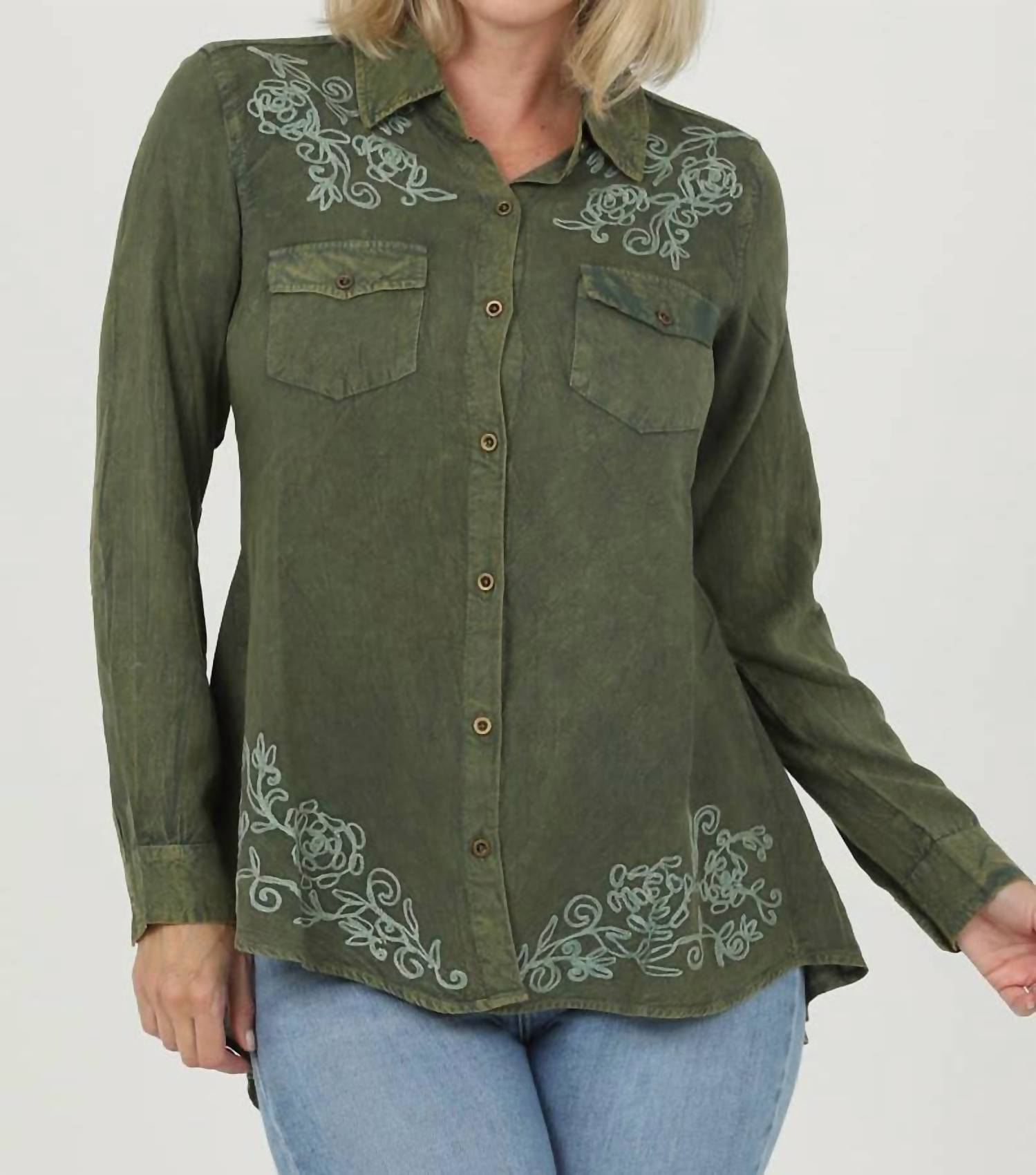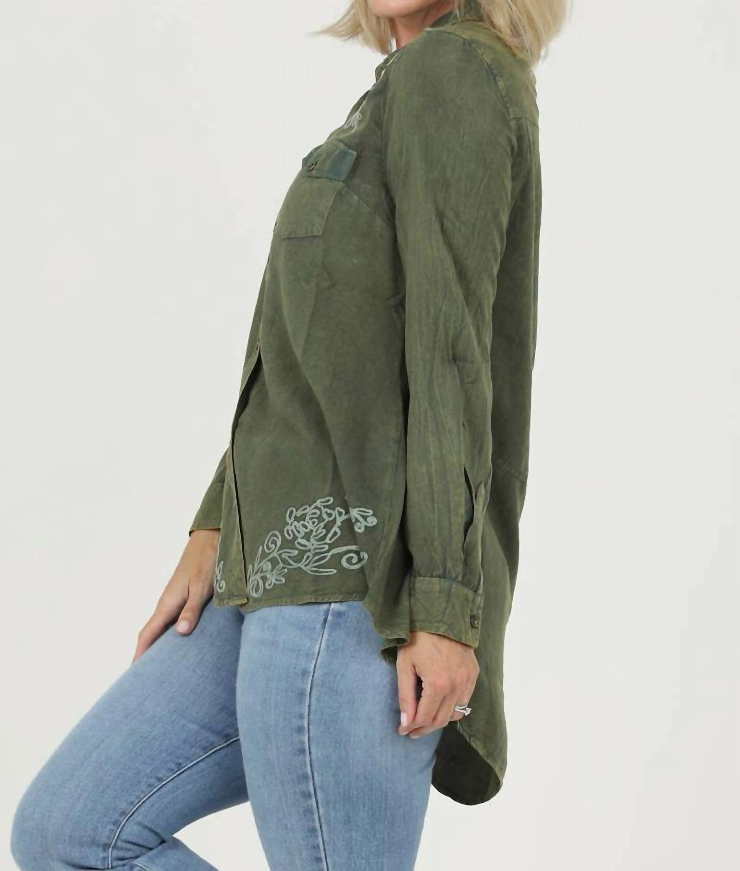 Nostalgia - Embroidered Hi Lo Button Up Shirt
