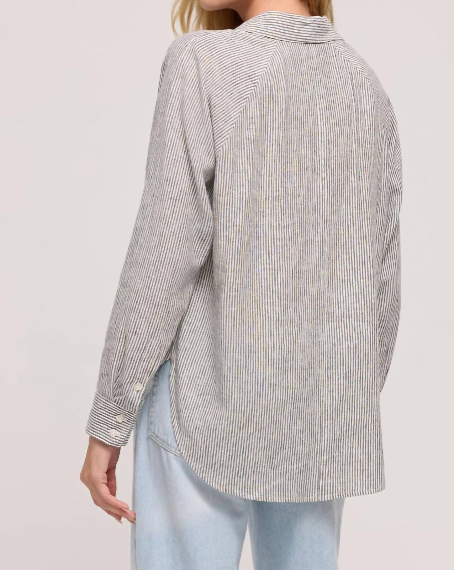 This button down shirt is comfortable yet polished. Embrace effortless style with the Perfect Line Stripe Top by Z Supply, featured in a refreshing Sea Salt hue. Designed for a relaxed fit, this button-up showcases long sleeves, textured rayon linen composition, and a left chest pocket for added flair. The top is a lightweight woven piece ideal for casual summer outings. Care is convenient with machine wash cold and line dry instructions, ensuring easy maintenance.