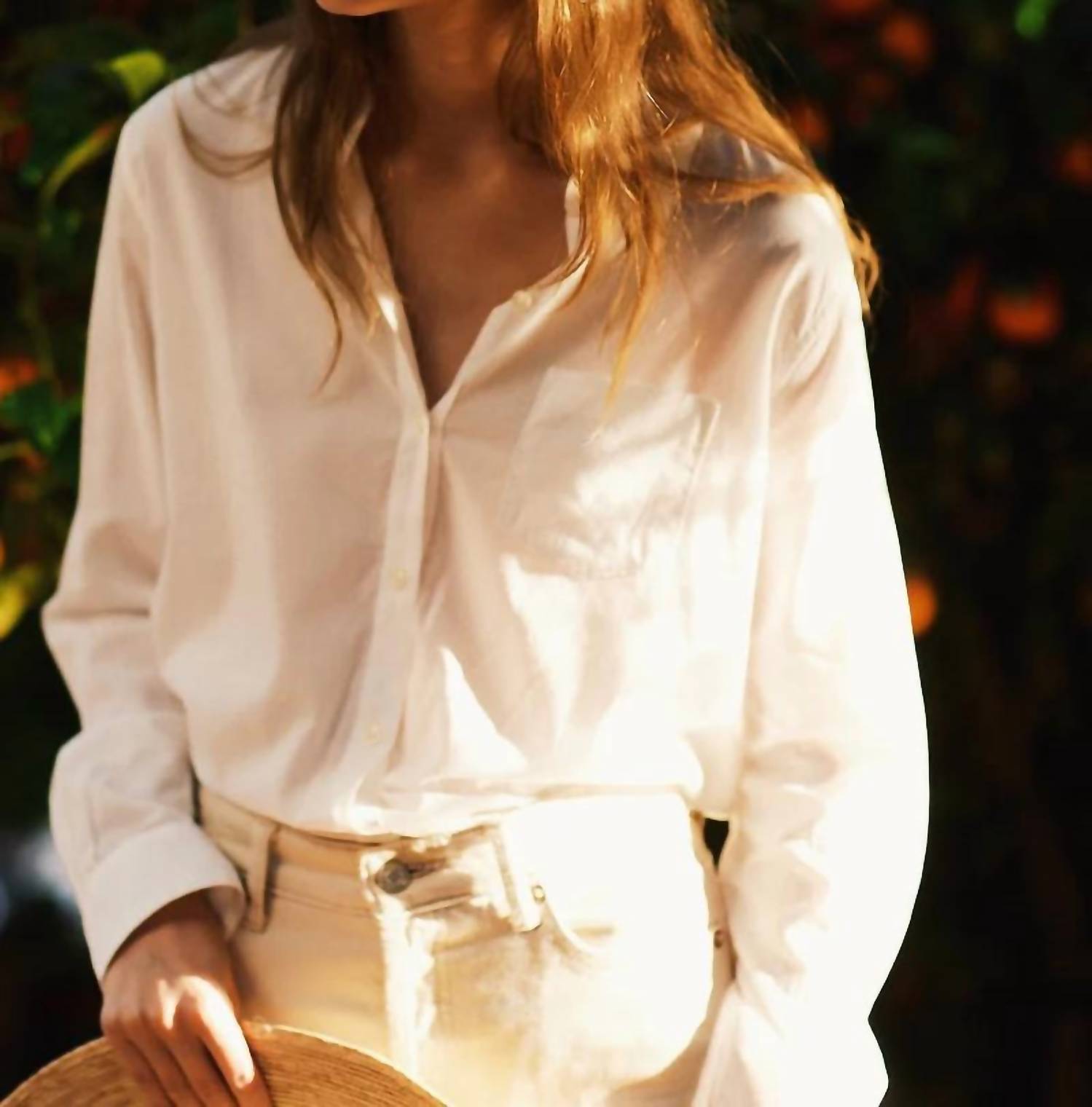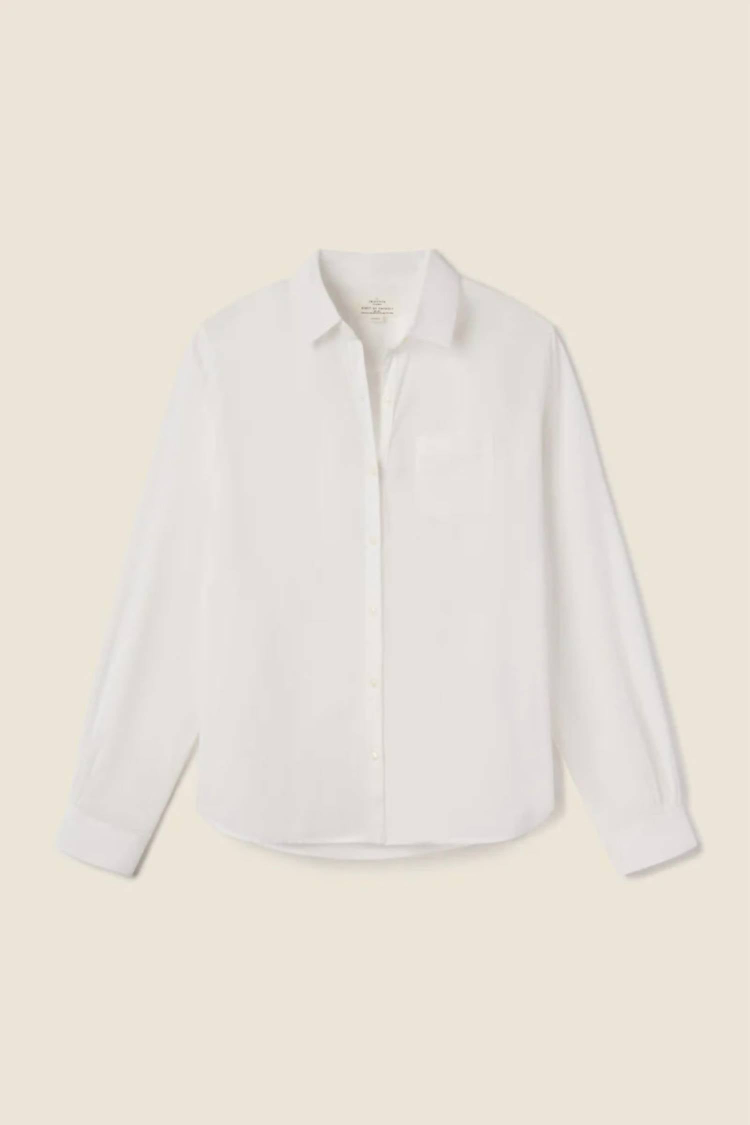 Perfectly tailored and soft to the touch. Introducing the Grace Classic Shirt by TROVATA, a timeless piece rendered in soft cotton for ultimate comfort. With long sleeves and a collar neckline, this shirt embodies minimalist elegance in solid white. Crafted with attention to detail, it features antique white buttons and a single chest pocket for added functionality. Closure: Button Closure. Care: Machine wash. This versatile shirt fits true to size, making it an ideal choice for both dressing up and dressing down. 100% Cotton