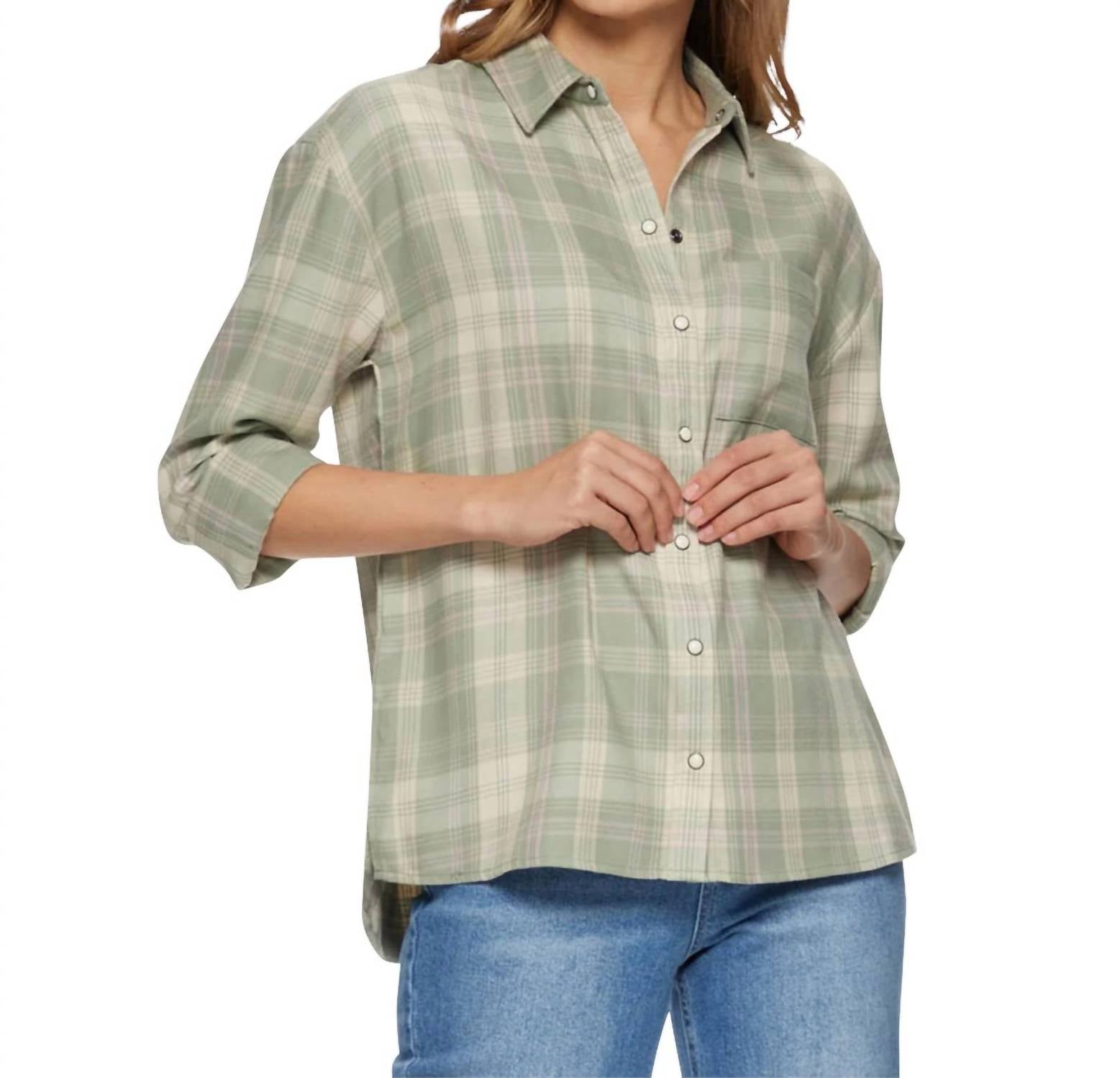 A classic button down shirt that will never go out of style. Elevate your casual ensemble with the Eric Woven Shirt by Flags & Anthem, crafted for year-round wear. Styled in a green plaid pattern, this shirt features three-quarter sleeves with button cuffs and a relaxed fit. Composition: 65% Rayon, 35% Polyester. Garment Length: 27” back body length. Closure: Button closure. Care: Machine wash; imported.