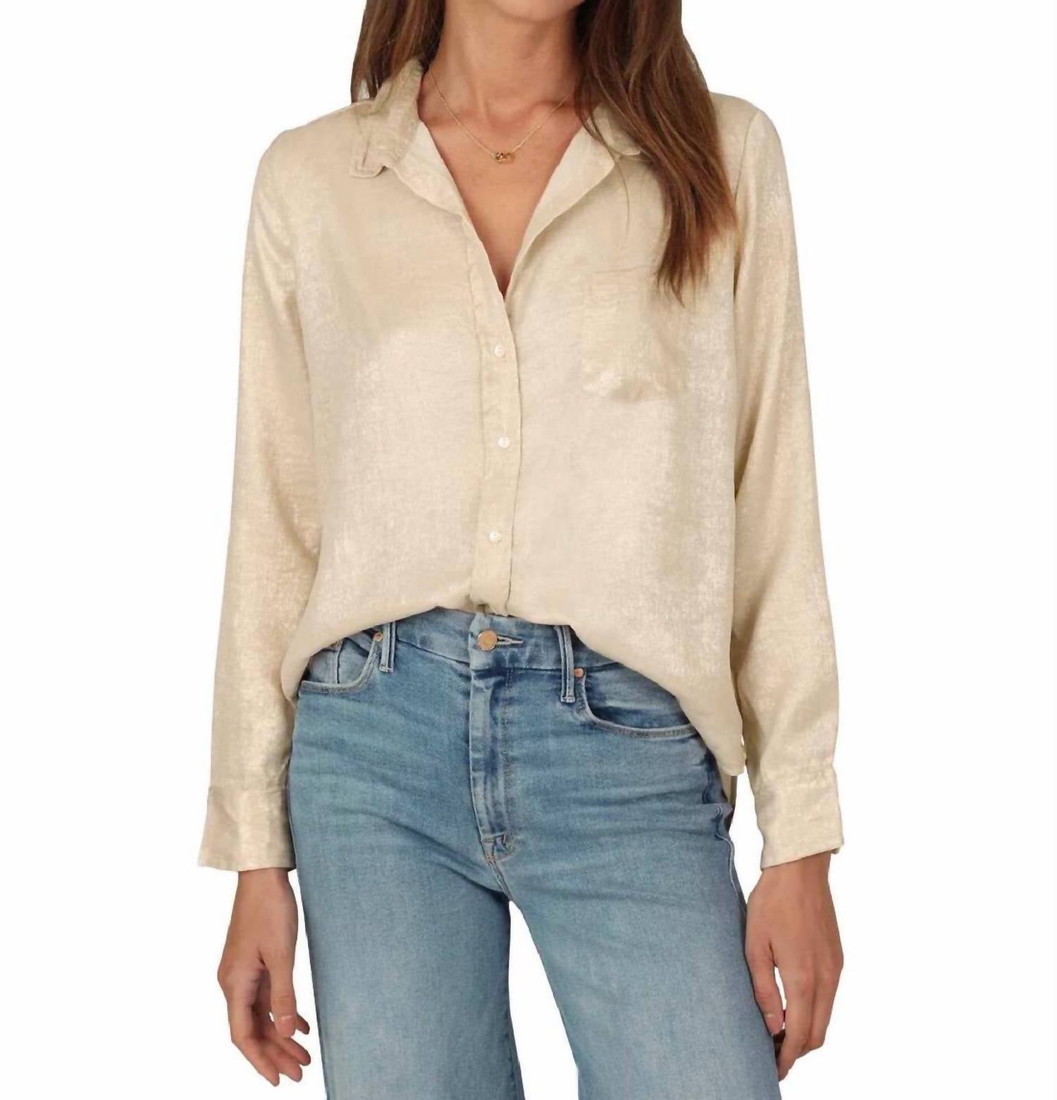 This long sleeve shirt is made from 100% polyester, featuring a classic collar and solid pattern for a clean look. Button closure with the added convenience of pockets. Hand wash warm, warm rinse, do not bleach, do not tumble dry, low iron.