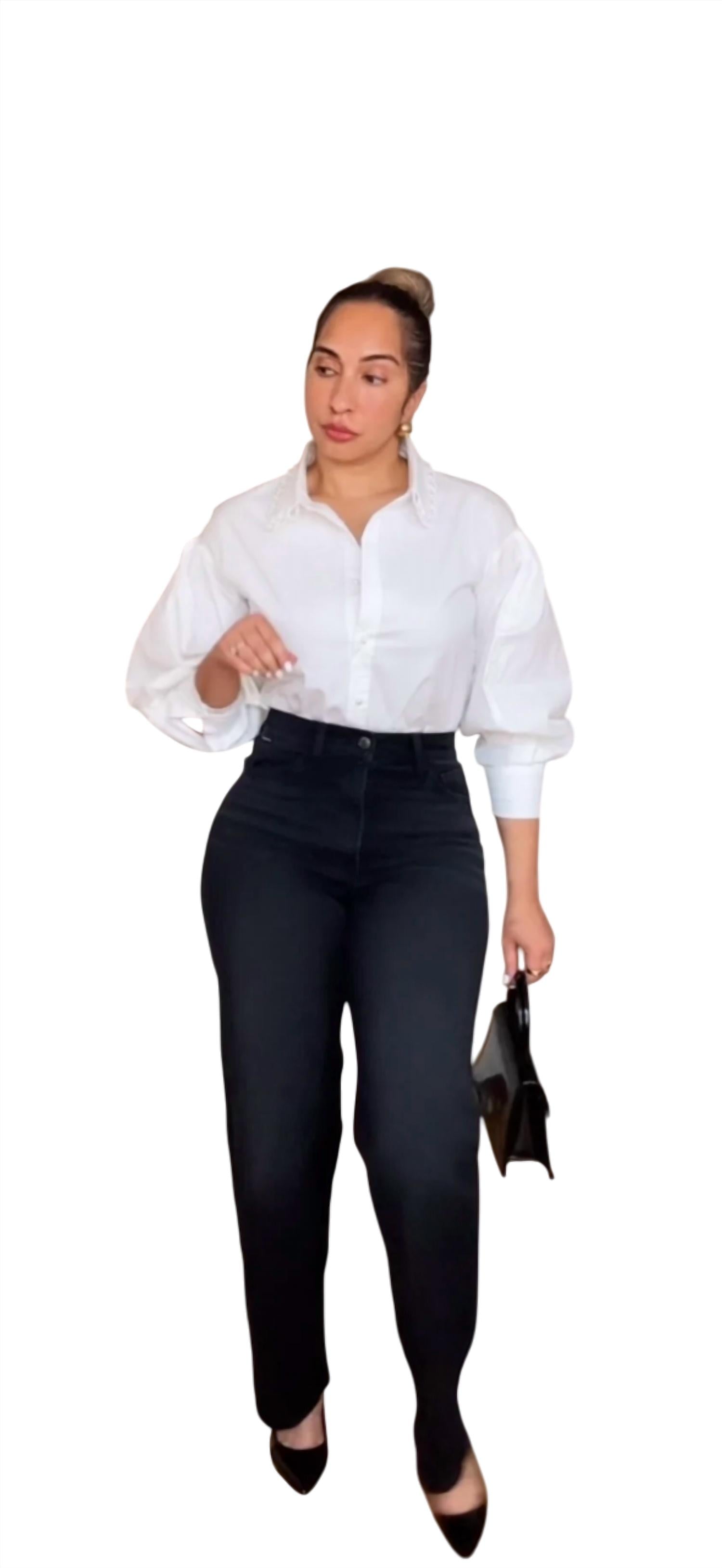 Perfectly tailored and soft to the touch. The Pearl Collar Top by GRACIA is a sophisticated white button-down shirt designed for women who appreciate timeless elegance. This solid pattern top features a distinctive pearl collar that adds a touch of luxury, paired with three-quarter sleeves for a modern silhouette. Closure: Button closure. Perfect for a range of occasions, this top effortlessly combines classic style with chic details.