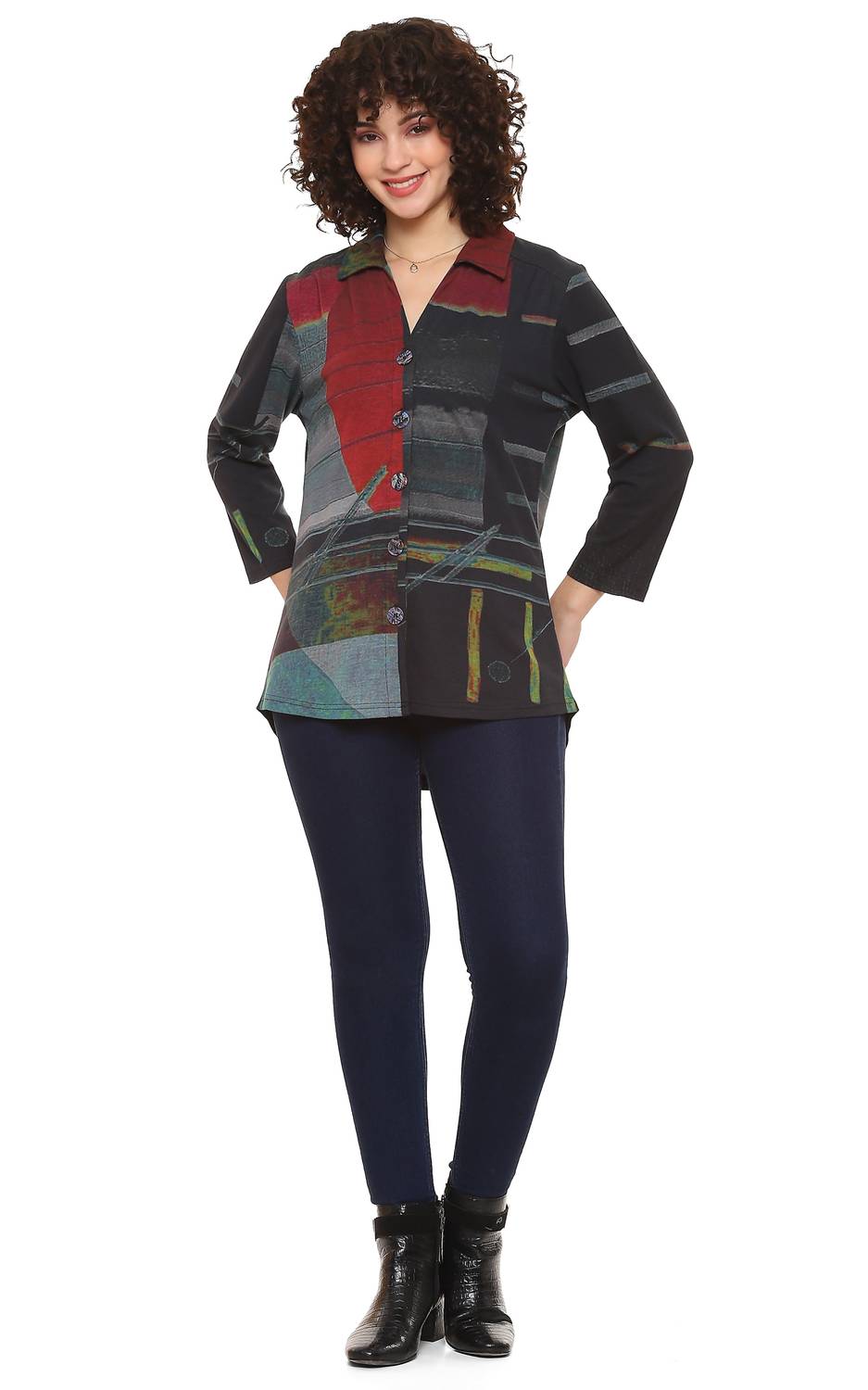 A classic button down shirt that will never go out of style. Collared neckline. Long sleeves. Front button closure. 52% Cotton, 20% Polyester, and 4% Spandex.