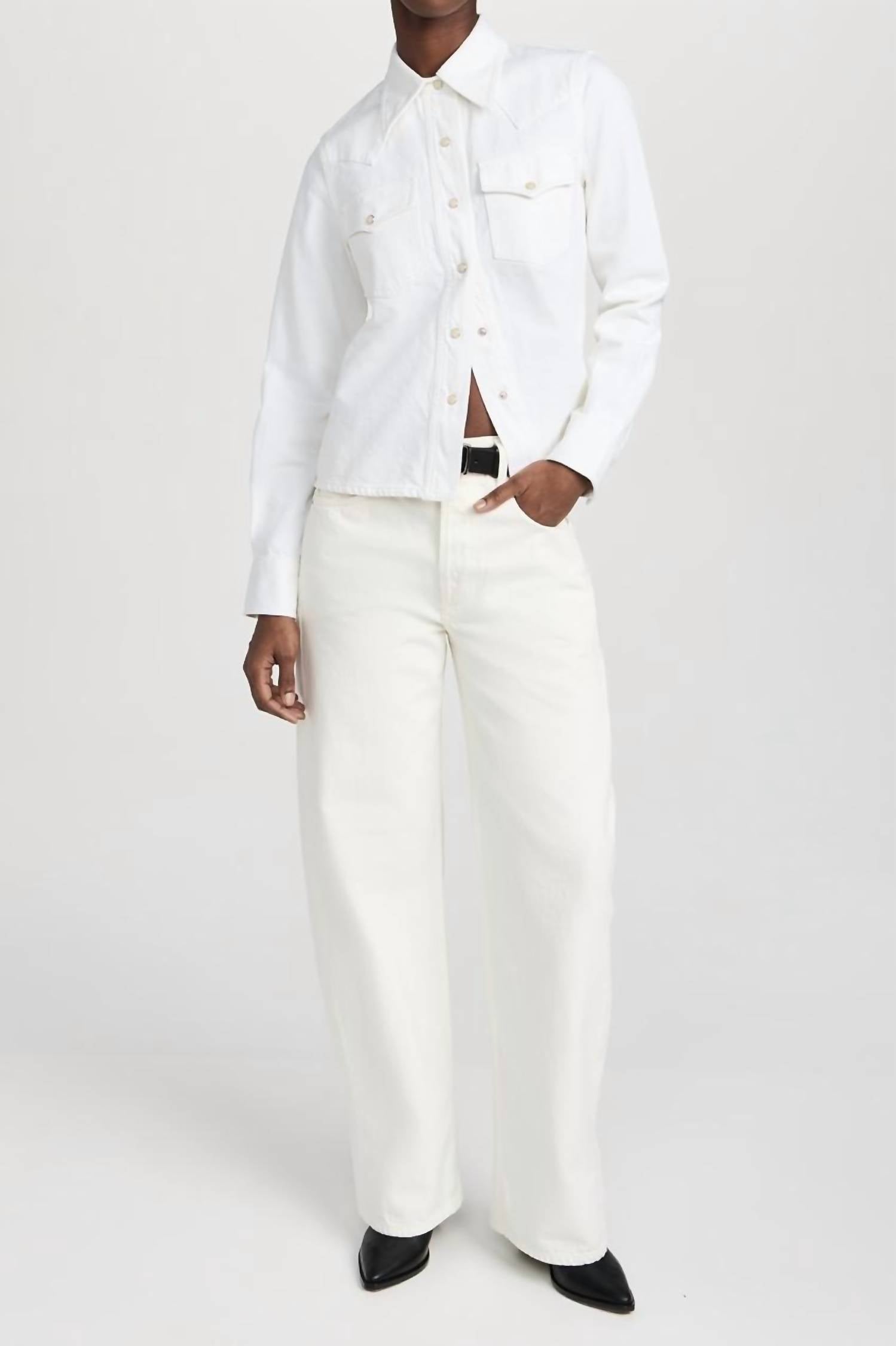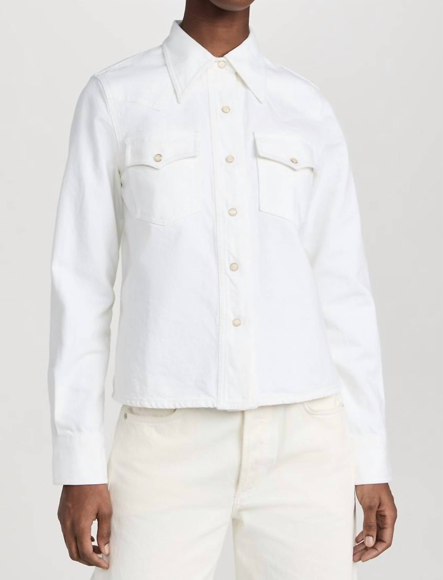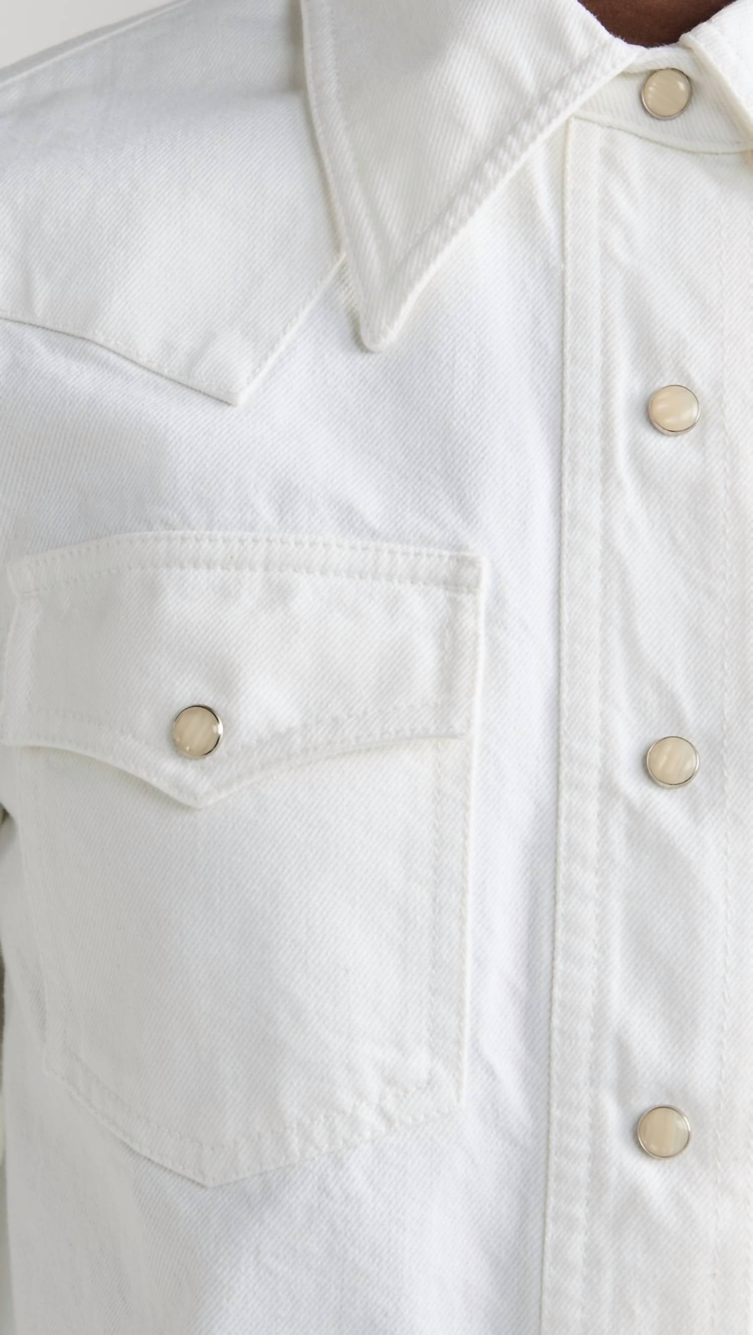 This button down shirt is comfortable yet polished. This Western Denim Shirt offers a slim fit with snap button closure and a crisp collar. Made from 100% cotton medium-weight rigid denim, it combines classic style with a firm, authentic feel.