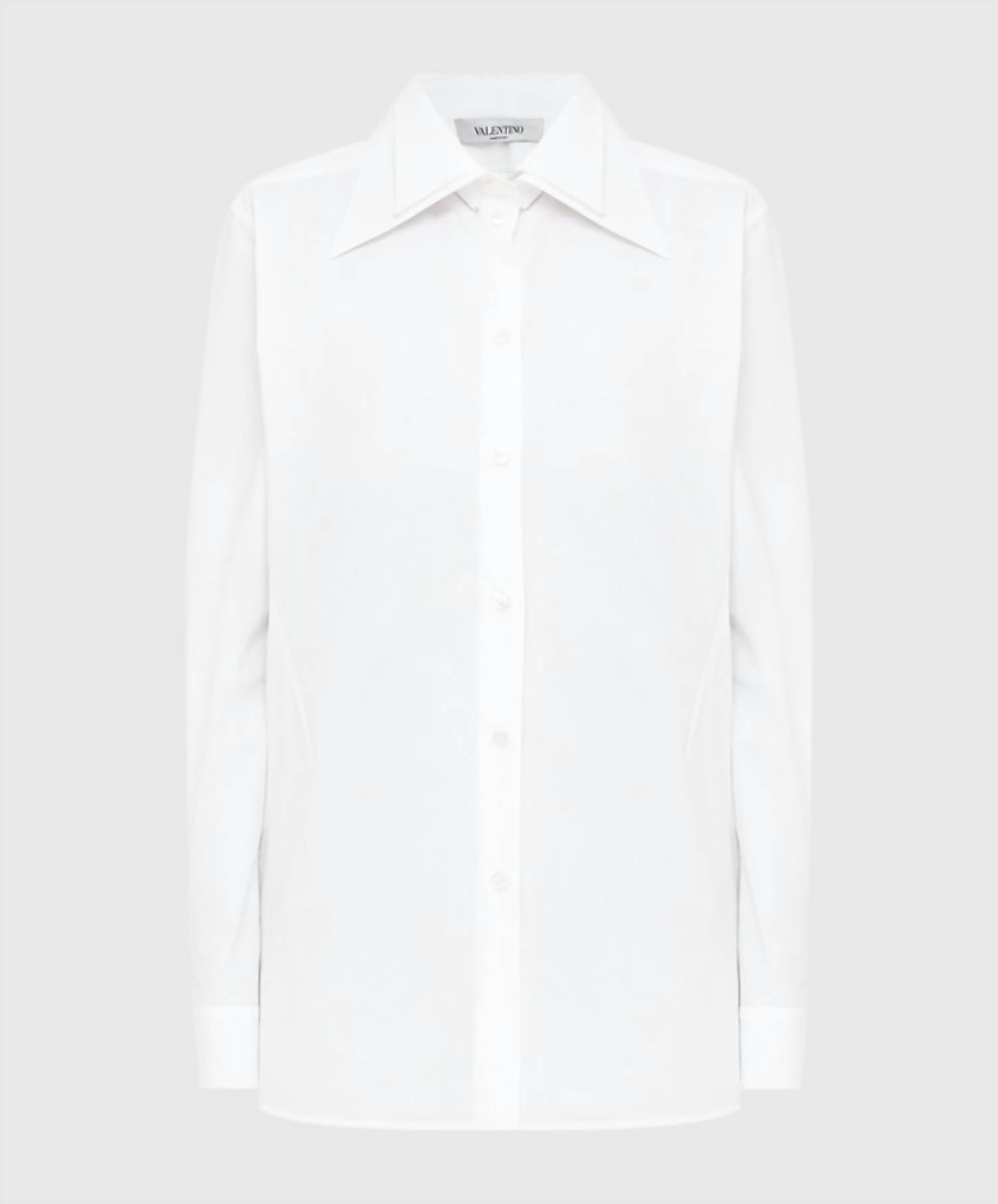 Perfectly tailored and soft to the touch. Elevate your wardrobe with Valentino's Double Collar Shirt in crisp white, featuring a sophisticated double collar design. Made in Italy, this piece boasts long sleeves and is crafted entirely from luxurious cotton for a breathable feel. It offers a refined look with a button closure and no pockets, making it perfect for the fall season. For best results, this solid-pattern shirt requires dry cleaning. 100% cotton.